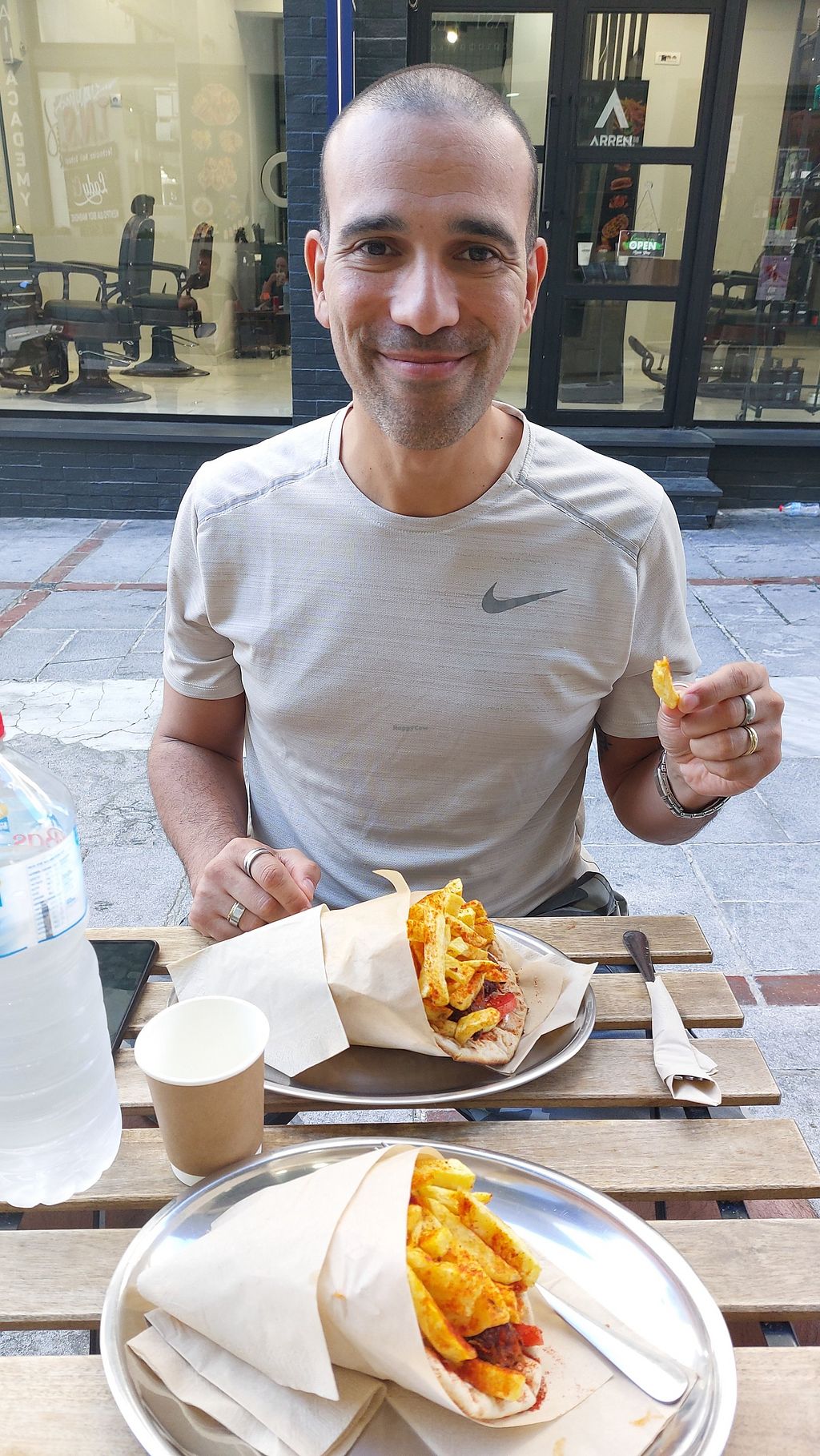 Visited on a thursday evening with my fiancée - we each ordered the classic size “pork” gyros. The food was made fresh, piping hot and absolutely delicious! The value for money is also incredible, our total for two gyros (which were very generous portions, I can’t imagine what the giant one would be like!) and two beers was only €13. The man working there was also so helpful with my allergies, double checking everything and i felt super safe even with a language barrier between us! 10/10 you HAVE to visit.