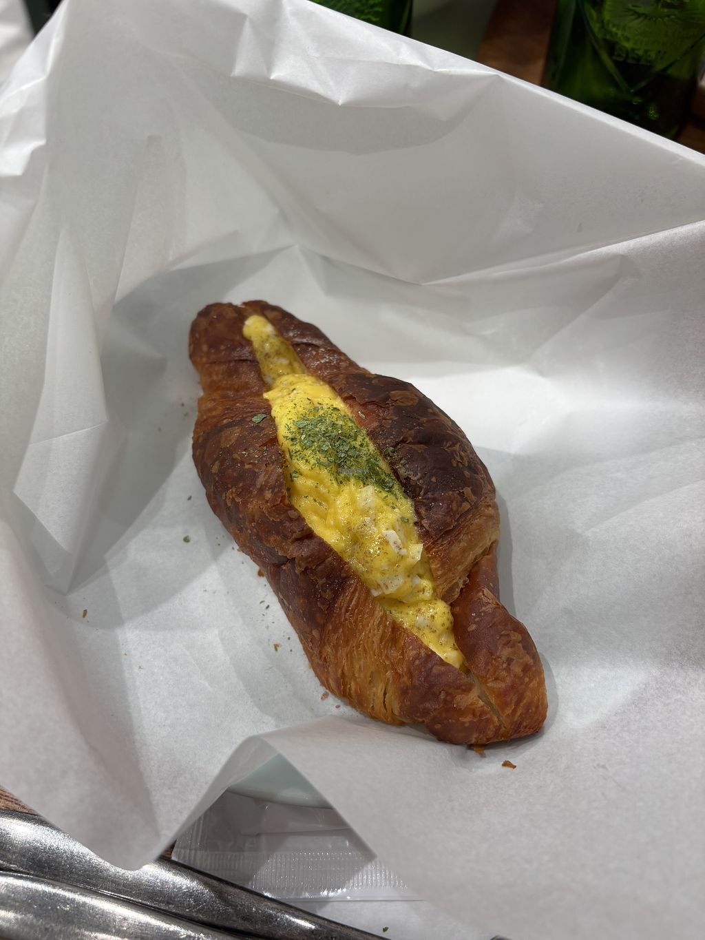 Anyways, I got three items. First is the egg and cheese croissant. I haven’t had a croissant in ages. It smelled just like real egg but tasted way better.