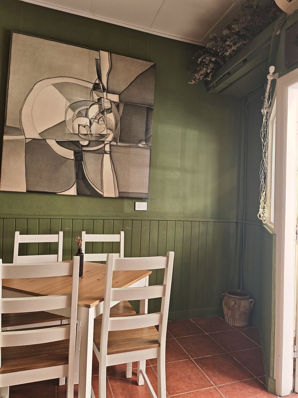 We were greeted by Surayya into the 4 tabled restaurant. We booked via Instagram that morning. Everything is beautiful and natural and carefully and lovingly curated from the decor to the toiletries to the choice of beverages not to mention the food. She is very proud of the provenance of everything. We had homemade lemonade/beer, tomato pate/beetroot soup, quinoa with mushrooms, rice with veg, pumpkin seed and carob tart and chocolate and hazelnut mousse and chicory ‘espresso’. She brought olives at the start. Gorgeous experience. She doesn’t speak a word of English and we managed very well both translating things on our phones with positive gestures and patience.
