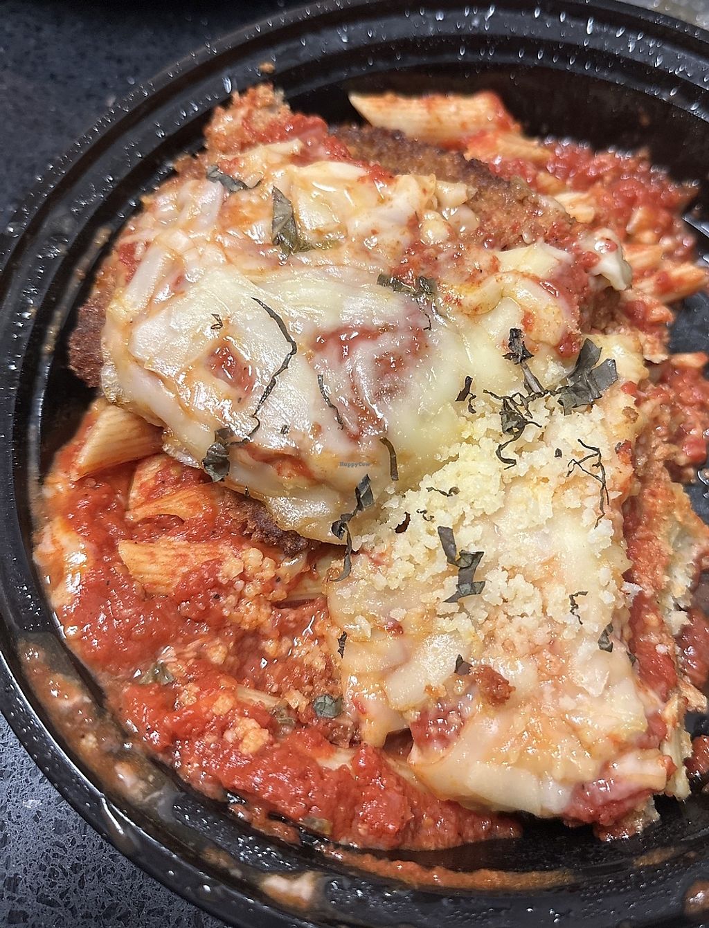 Fettuccine Alfredo ($16.95, buy 1, get 1, on Uber Eats) - “Vegan parme…