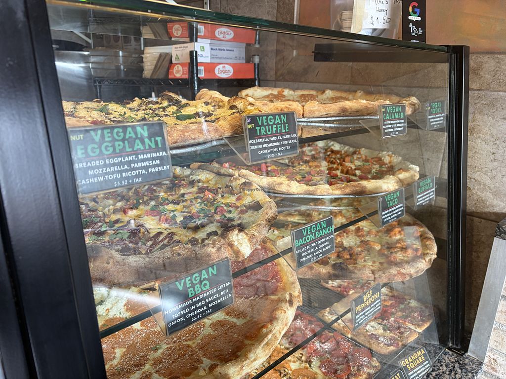 One large vegan pie, no cheese , with eggplant oregano and basil , ext…