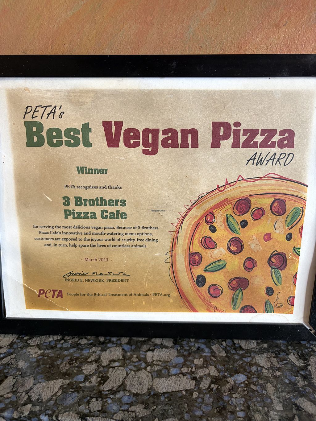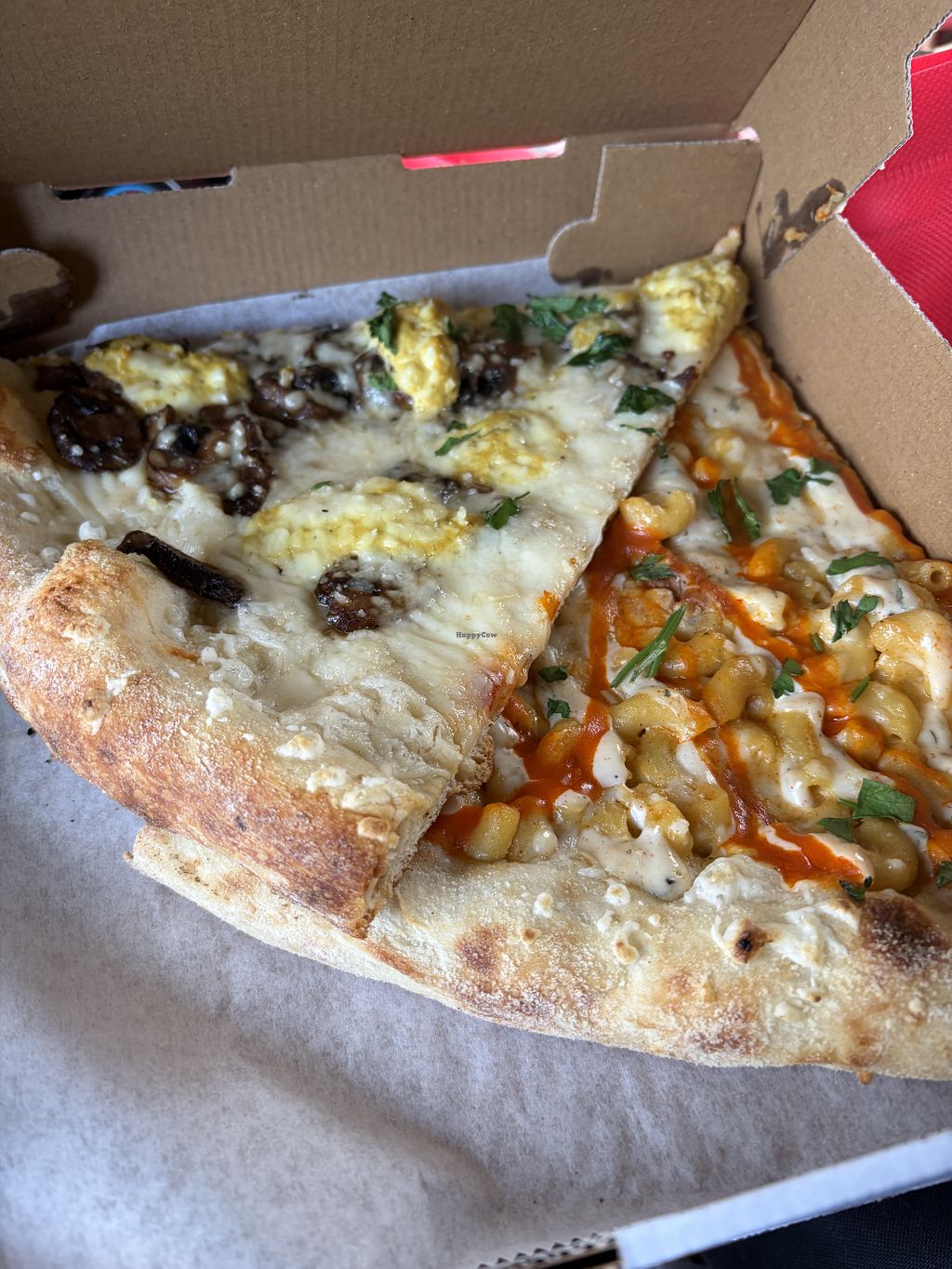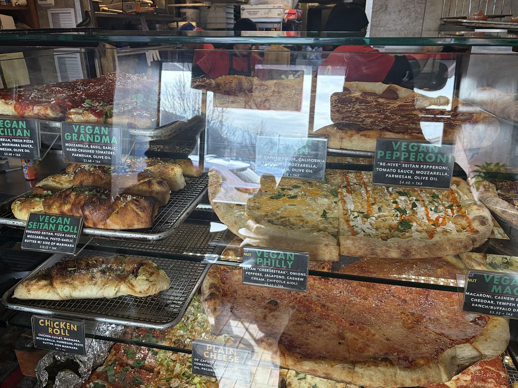 One large vegan pie, no vegan cheese, light on sauce with eggplant, or…