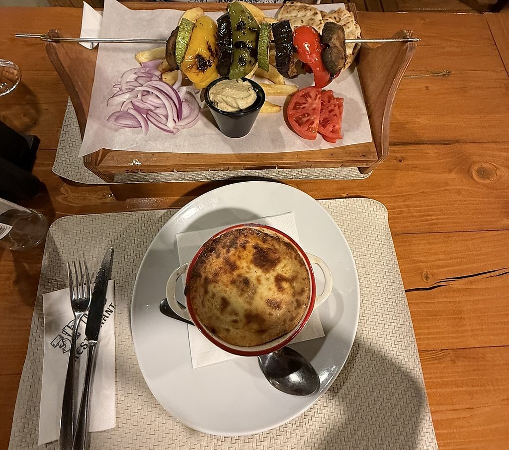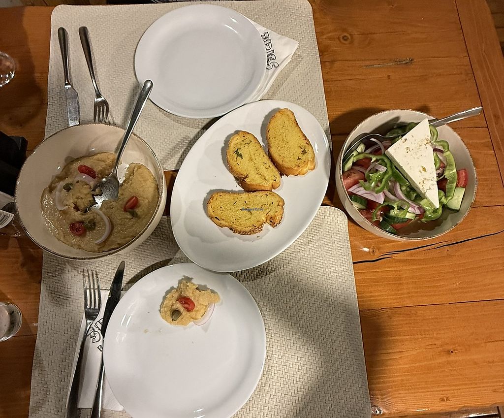 We opted for 3 pigs after searching the menus on the pefkos strip and were excited to see traditional Greek dishes. The nibbles before and watermelon were nice touches. The food was nice but a bit on the oily side and mine and my partners’ vegan moussakas tasted entirely different. Still a nice experience and happy to see vegan options so available.