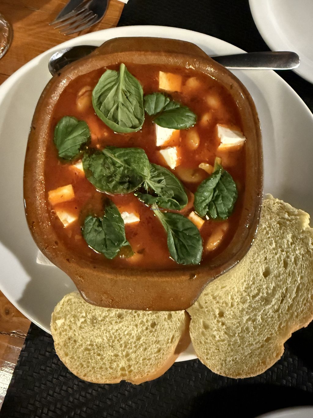 We ate here twice during our stay. The first time I had the giant beans with vegan feta which was nice but very rich. I feel it would have been nice served with some fresh green vegetables or potatoes to break up the richness a bit. For dessert I had baklava which happened to be vegan when served without ice cream. This was delicious and would have been even better served with some vegan ice cream.