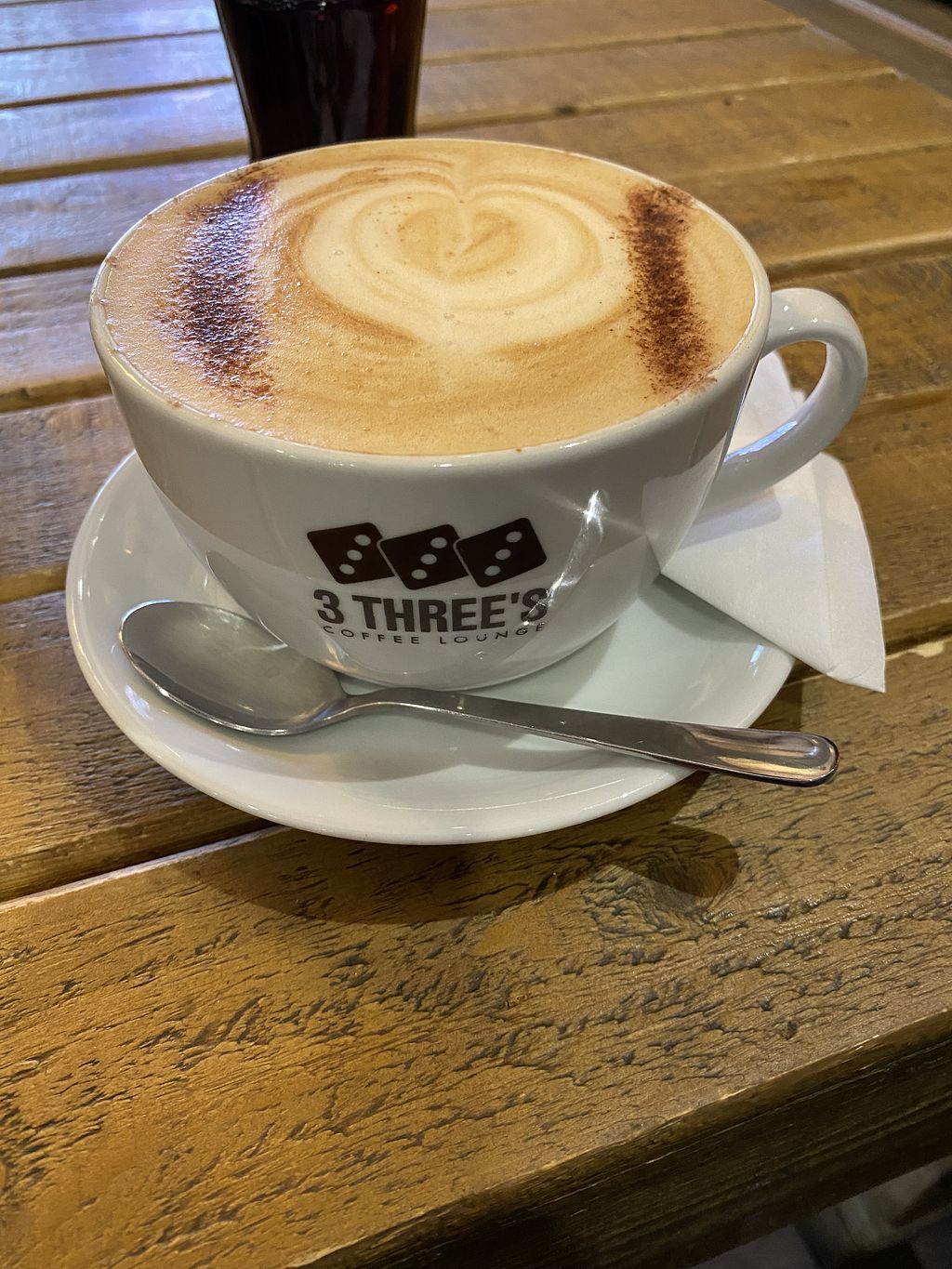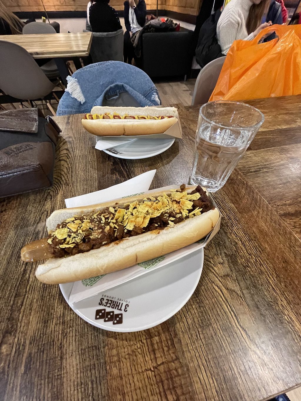 We went to 3 Threes for a quick lunch and both chose the hotdogs. Teenager also had a piece of Oreo Tiffin. It was a bit slow, but food was good and great value. Only thing that let the place down was the toilets, which could do with a thorough clean and update!