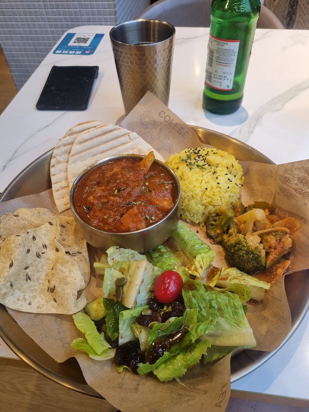 The staff made sure they understood what vegan meant and was very helpful. You got a big plate with different options, but it was a bit salty for me. I tried the Alo Goobi