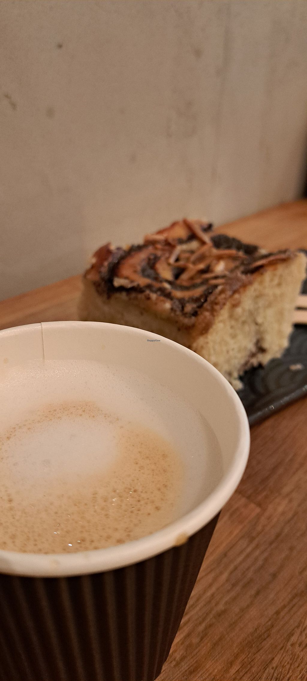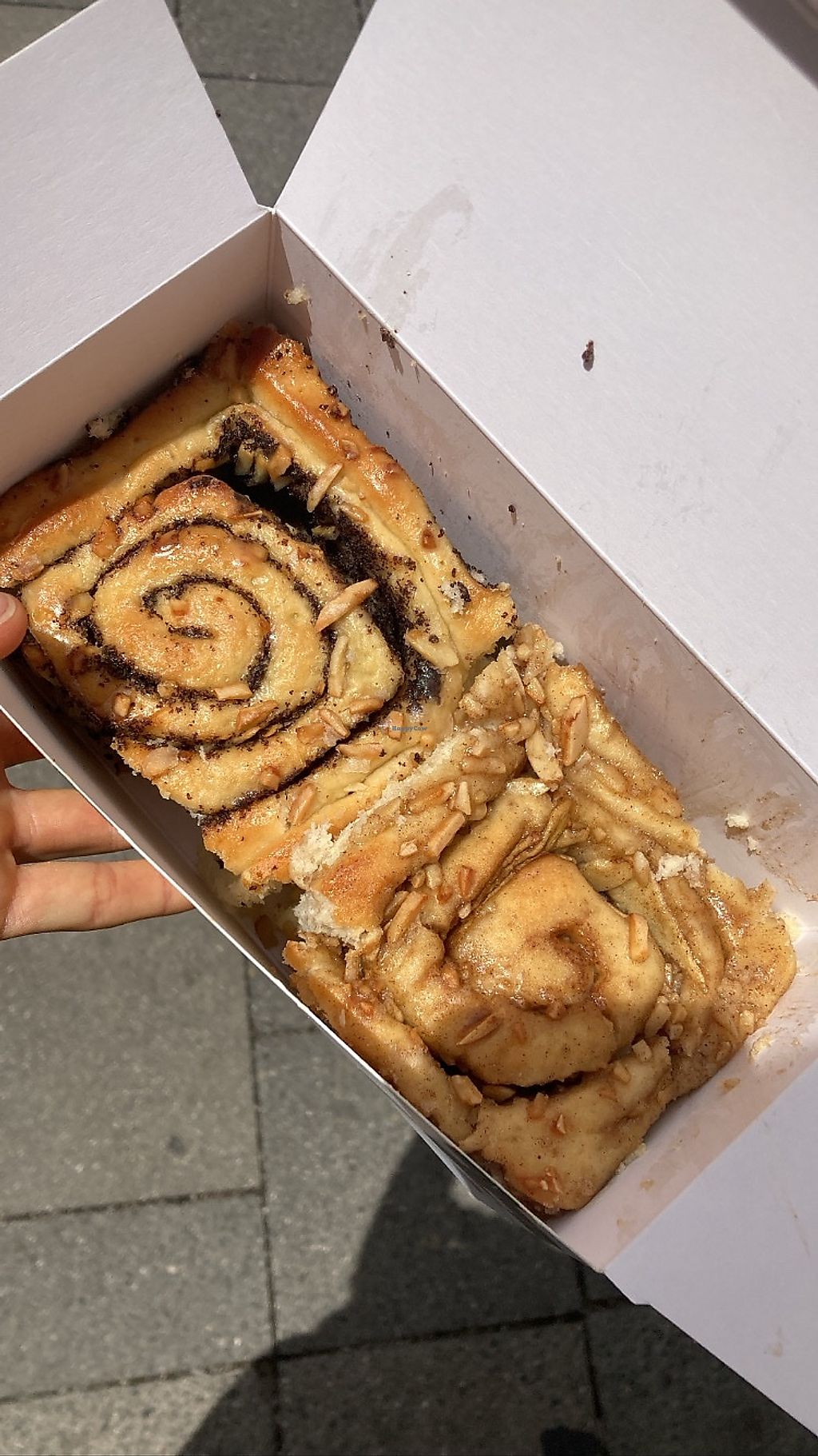 We were super happy about the big amount of cinnamon rolls choices in different varieties. We had the poppy roll and it got better and juicier with every layer to the center. The They also serve oatmilk Cappuccino.