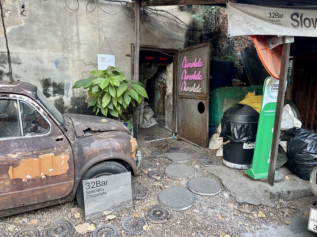 Sells crafted chocolate from Thailand locals. Located in the middle of Talat Noi where the ancient most famous Fiat car is parked. Offers samples of a variety of chocolate before ordering. Serves hot & iced drinks, chocolate bars and snacks. Has a vegan oat milk blend with a chocolate bar. Also sells souvenirs. Open Mon-Sun 10:30am-7:00pm. Actually opens at 10:40 am.