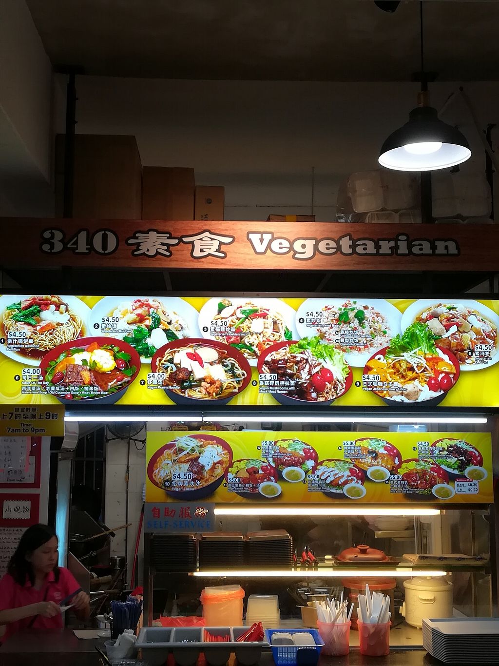 Located at Blk 340 Ang mo kio ave . Sells ramen, rice sets, delicious and price reasonable average $4.50.