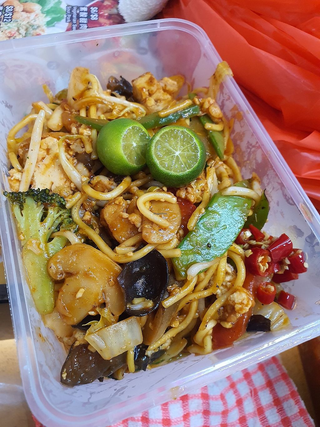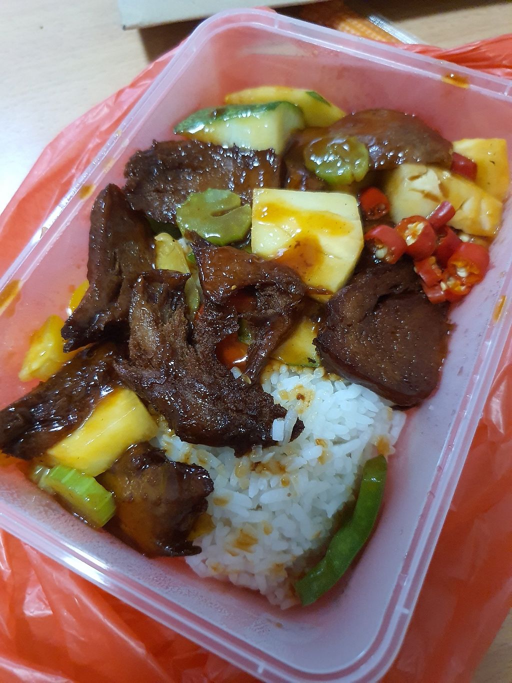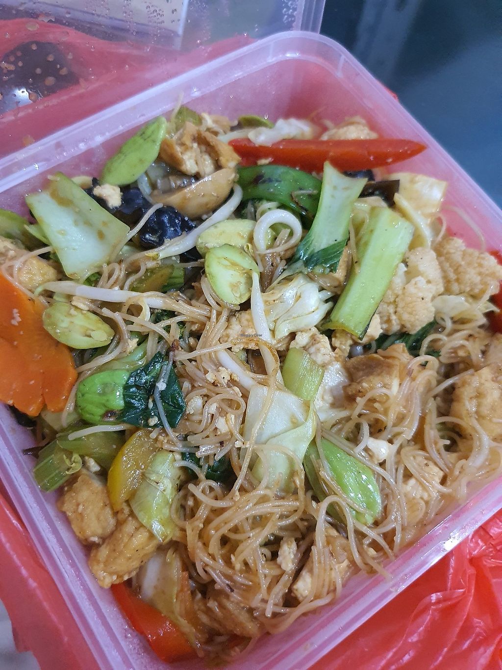 Pros: A lot of veggies. Very less of fake meat.