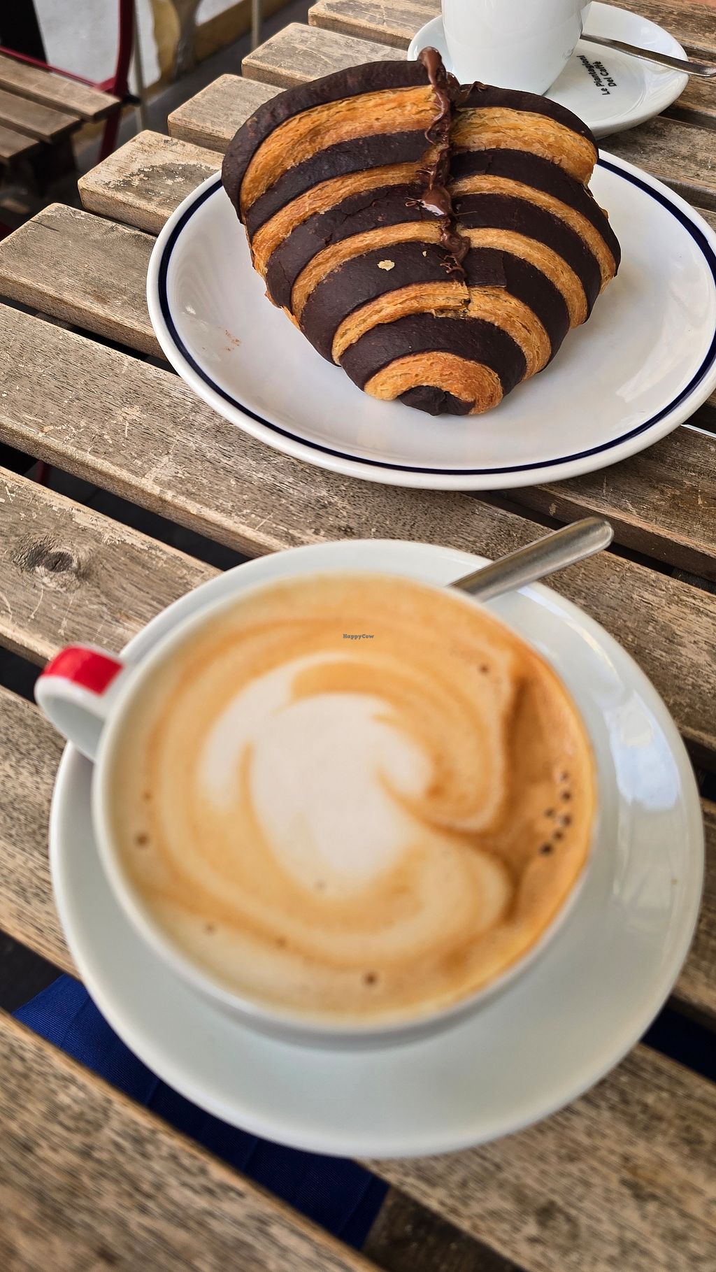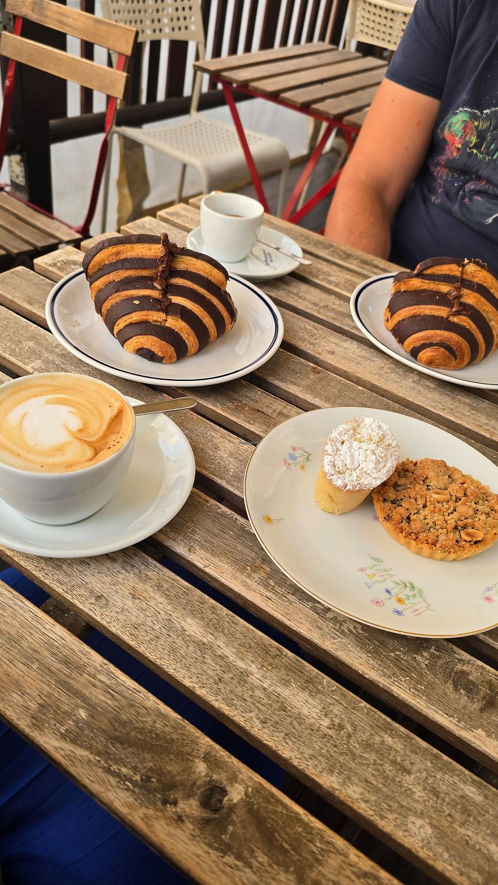 Read moreFor breakfast, they have a wide variety of pastries, all sooo delicious (try the ones that look like cinnamon rolls!), and you can tell they are made with love. Coffee, cappuccino, latte macchiato, etc. are very good, too. They have different plant based "milks" to choose from. For lunch, they serve different meals like sandwiches and more. Even though it wasn't time for lunch yet, they made us two sandwiches that were really tasty.