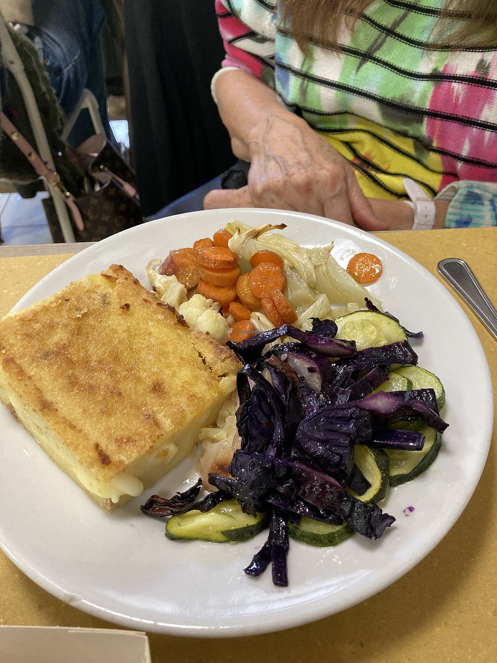 The owners were so sweet and accommodating to us! we forgot to ask for SOS free (salt, oil, sugar) foods and instead ordered off the daily special menu. Pat had a chickpea burger with a fresh salad and I had a black rice zucchini dish. We split the soup of the day which had lentils and greens in it. We ask about all their delicious looking desserts, but none of them were oil free. They were very apologetic and so sorry that none of their desserts were oil free. I am sure they could have made us an oil free vegetable sandwich had we remembered to ask. The owners were so very kind!