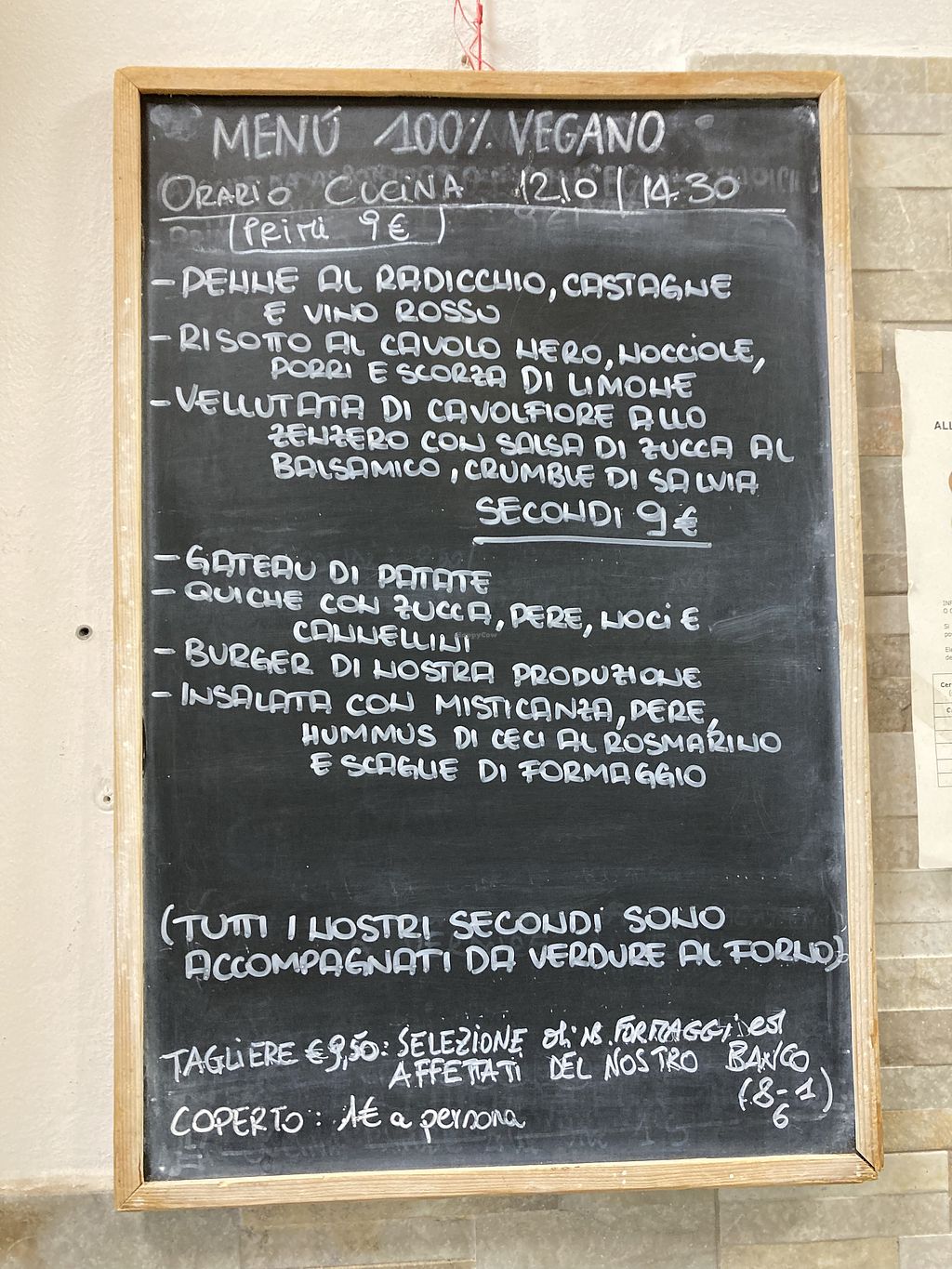 This is a little pastry shop/bar. They also serve lunch but even though lunch ends at 14:30 most options were unavailable by 13:50. So don't be late. The veggieballs was not special but lasagna with pesto was great. Little pizzetta was very tasty though it better be served warm. Little sweet pastries were also good. Prices were lower than what we used to pay in other places like Pisa. Fully vegan 🥰