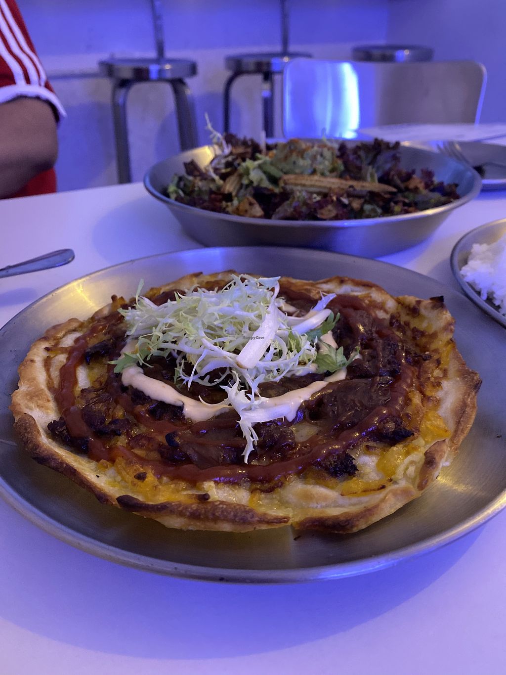 Read moreThe BBQ Impossible bagel pizza was incredibly flavourful, and the bagel dough pizza crust was super thin yet chewy at the same time! The omnipork katsu curry was the best comfort food one could ask for. The avocado salad is also unexpectedly remarkable — the avocado went super well with the Japanese wafu dressing, and the cinnamon apple bits were an innovative addition.