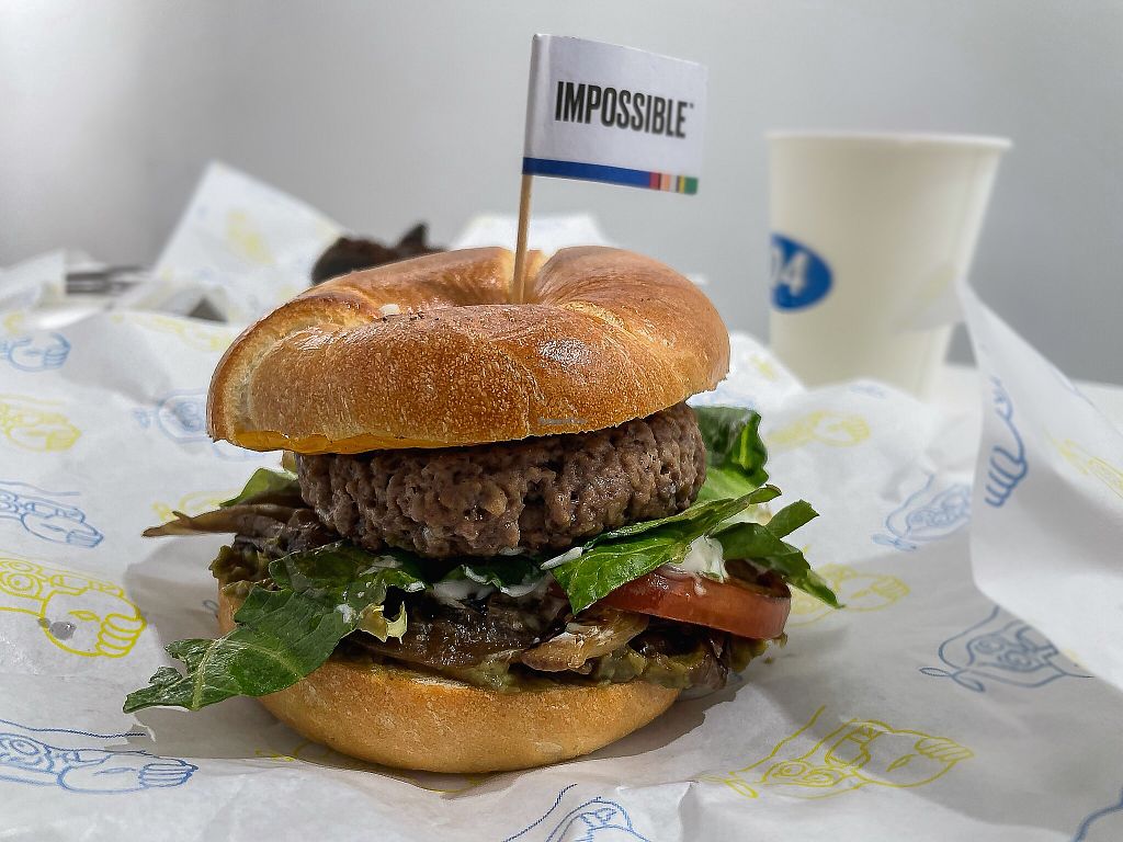 Specializing in vegan bagel sandwiches, salads, and sweet bagels. Also serves vegan ice cream and milkshakes. All cheeses Reported to be vegan. Reported closed May 2023.