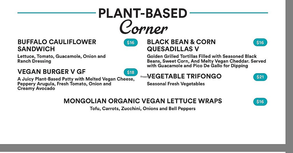 Serves meat, vegan options available. Poolside bar with vegan choices. Menu is clearly labeled and includes vegan Mongolian lettuce wraps, vegan burger with lettuce, tomato, onion and hummus and vegetable trifongo plate. Open Mon-Sun 10:30am-10:00pm.