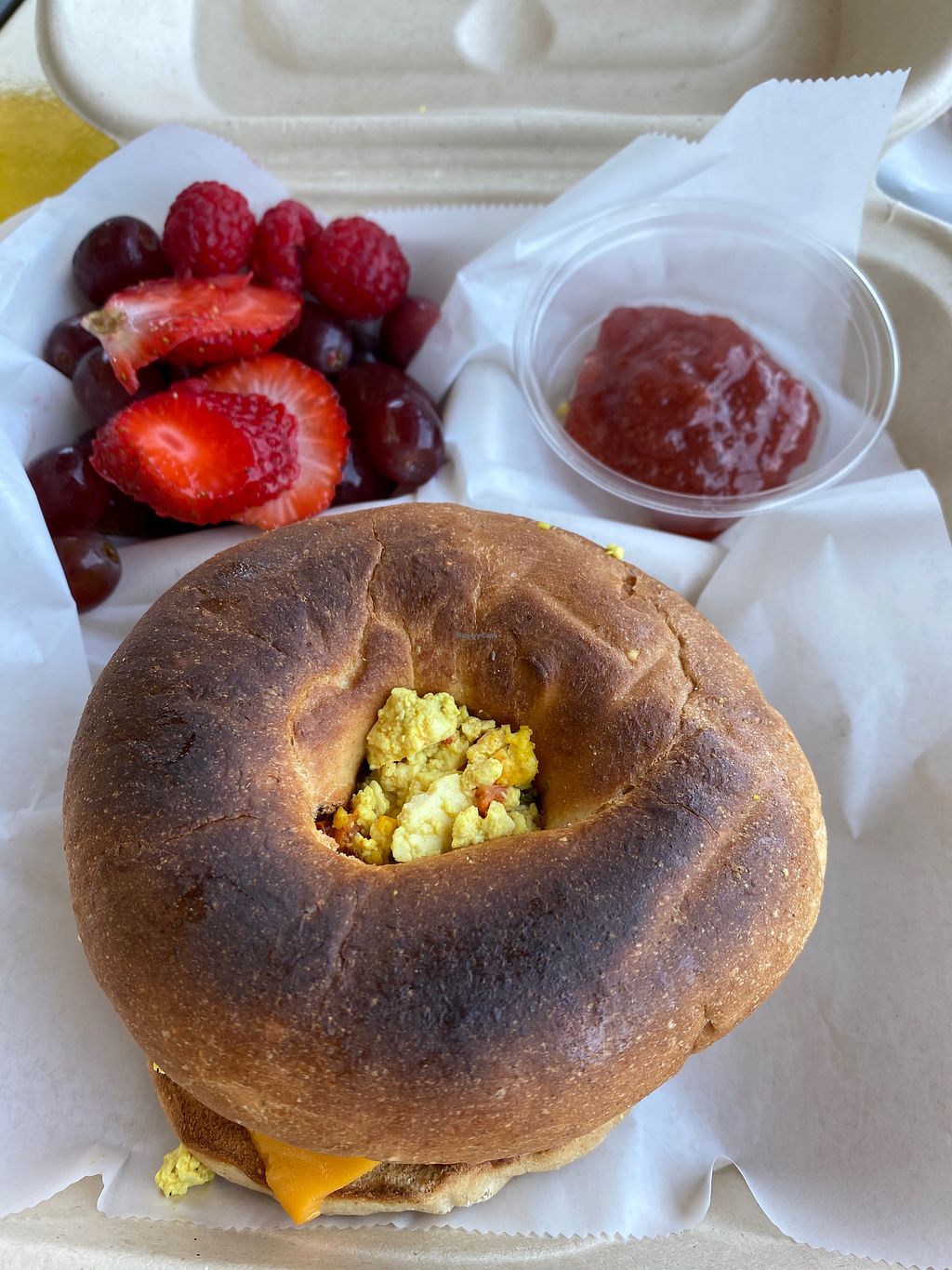 This is a great place for coffee and a quick breakfast. The location is very cool, as the shop is part of a small complex composed of repurposed shipping containers. The Epic Breakfast Bagel Sandwich was wholly satisfying, with very tasty tofu scramble, avocado and cheese. The vanilla iced latte I got was sweet and creamy - everything I want in a latte. It was so good, I ordered a second one to-go for later.