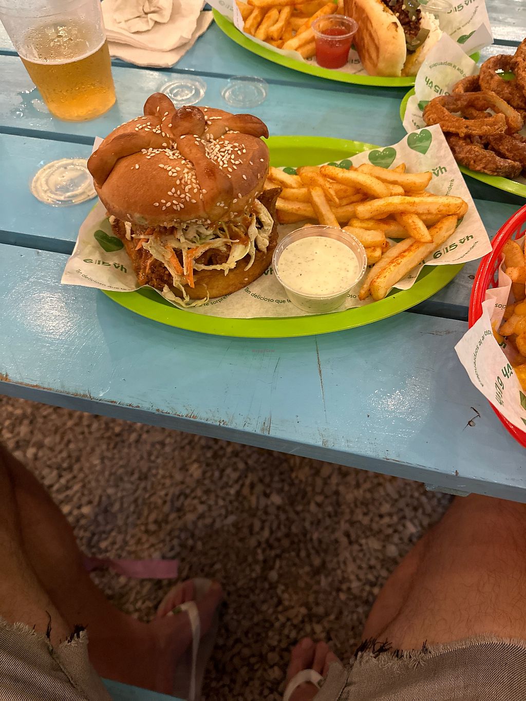 Burger con medallon beyond meat acompañada de aros de cebolla y bbq, p…