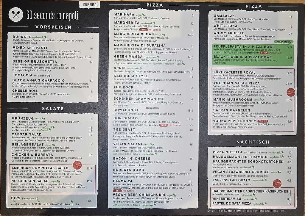 Lacto Ovo Pizza Honey Non-veg Serves meat, vegan options available. Neapolitan-style pizza restaurant chain offering vegan dishes such as pizza green mamba, pizza with vegan beef chimichurri, and grünzeug salad. Open Mon-Sun 11:30-23:00. More