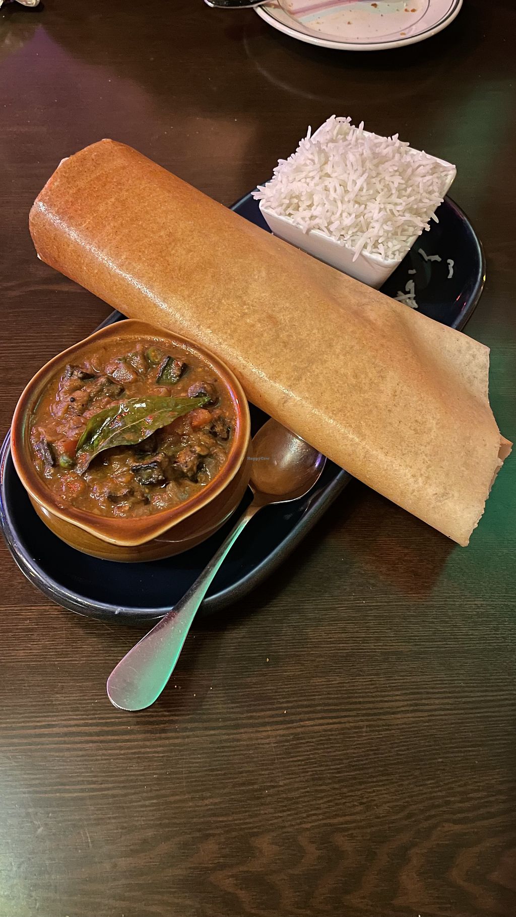 Serves meat, vegan options available. Indian restaurant with clearly labeled vegan options, including samosas, pickled idli, sambar vadai, an idli vadai set, dal tadka, bendakaya pulusu, chutneyville sambar, and madras brinjal curry. Open Tue-Sun 11:00am-2:30pm, Tue-Sat 5:00pm-9:30pm, Sun 4:30pm-7:30pm. Closed Mon.