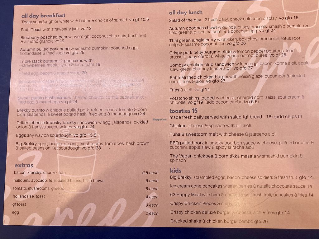 Breakfast & brunch cafe open everyday (7am-3pm) with dedicated seasonal vegan menus for breakfast & lunch (plus smoothies)! Lots of yummy wholesome vegan options to choose from. When I’m in Geelong this is one of the few places I go to/order delivery from knowing I’m going to get a delicious and satisfying vegan meal. Healthy, fresh, creative, decent portions. Overall excellent in my opinion considering they are not an ‘only vegan’ cafe.