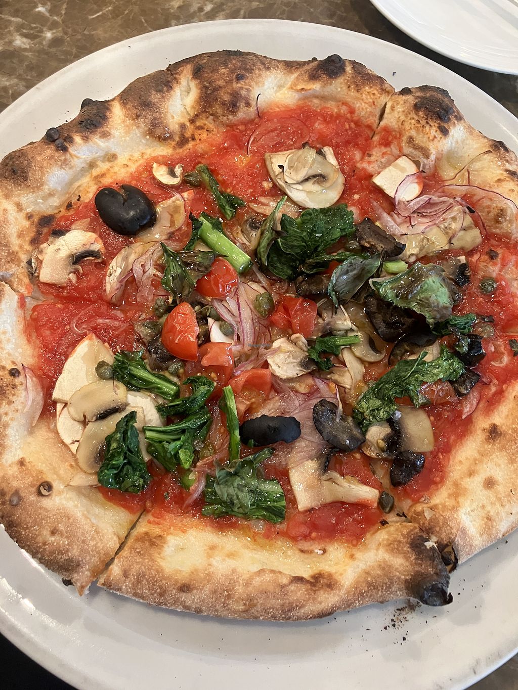 Vegan pizza (left), pizza funghi (right -- ask for no meat)