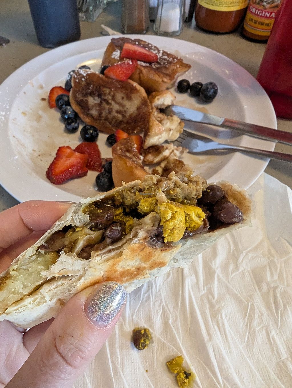 So many vegan options! Loved it so much we went here back to back (evening and breakfast service). We had the french toast, nachos, breakfast burrito and a pancake.