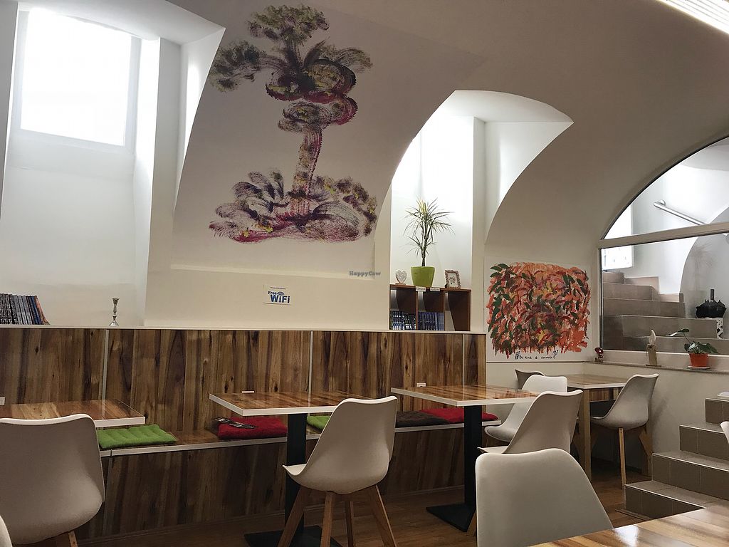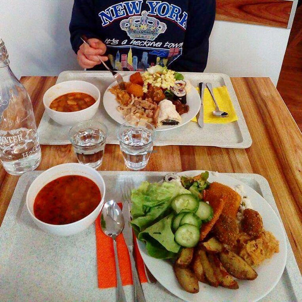 We visited this place knowing that have good reviews, but we didn't expect this piece of art! It is maybe the best vegan restaurant I have ever been, coz the atmosphere is realy positive and makes you feel blisfull. The buffet needs no recommendations. Full of vegan delicacies, food and dessert, excellent soups and a lot of sauce. I had a goulash soup, onle plate with food and some dessert. I thought I was going to burst out from the food but realy couldn't stop. Don't miss it, worth's every euro to spend
