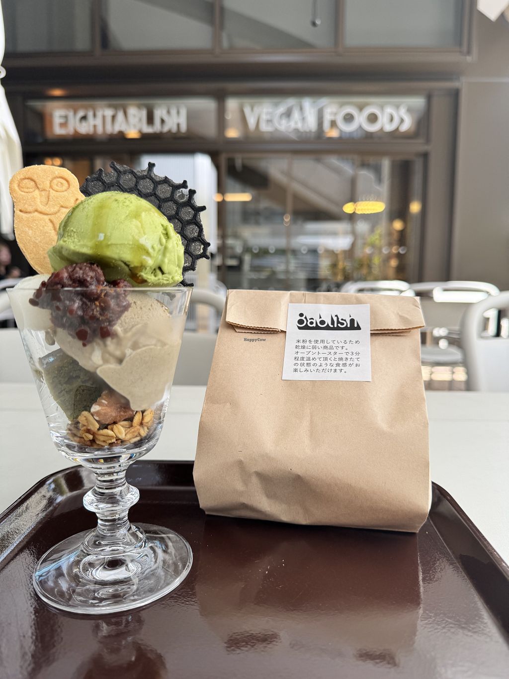 Lovely meal at 8ablish this evening. Olives, tofu and vegan cheese followed by grilled vegetables. Attentive and helpful staff and a menu in both English and Japanese. Quite difficult to find - Google Maps got us to the mall but it took some time to work out we needed to be on the top floor of Garden Centre A. Glad we persevered.