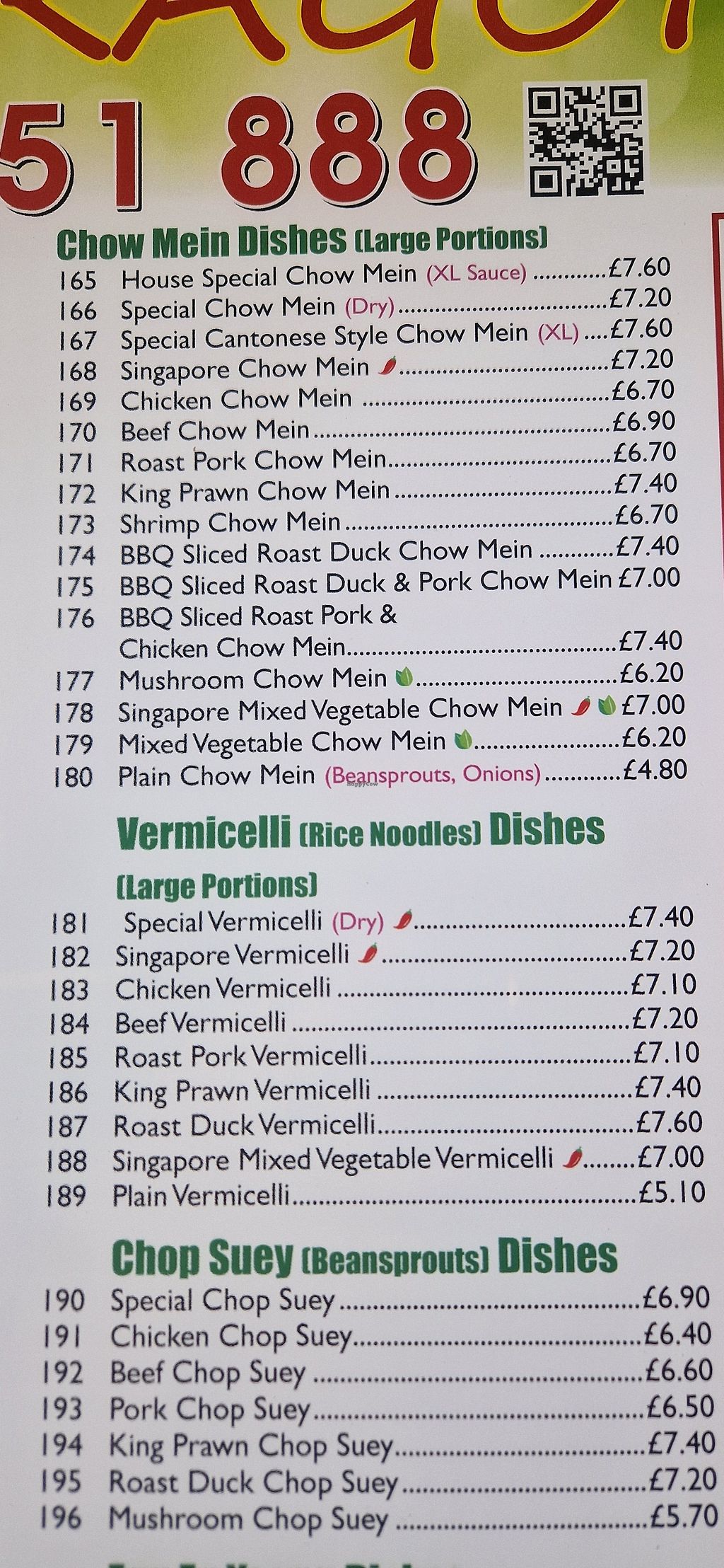Read more... 2 starters, 3 mains and 2 lots of chow mein. We received an additional free starter of spring rolls. All delicious and only £41. We had a second dinner out of it on new years day. Double win. We only had to wait 15 ish mins but people calling were being quoted 80 mins plus so be aware (could just be cause it was nye). Huge choice and all marked clearly. If I lived nearby I'd def going regularly!