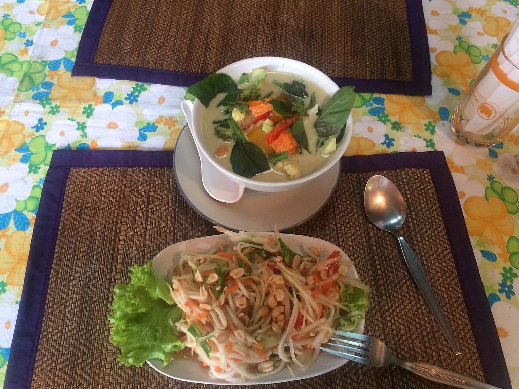Family owned restaurant. They don't have vegetarian or vegan options on the menu. But, if you tell them that you like your meal mangsawirat (vegetarian) or jay (vegan) they will prepare it for you. After some visits, the cook bought tofu for me. The owner and the cook are very kind and the dishes are very tasteful.