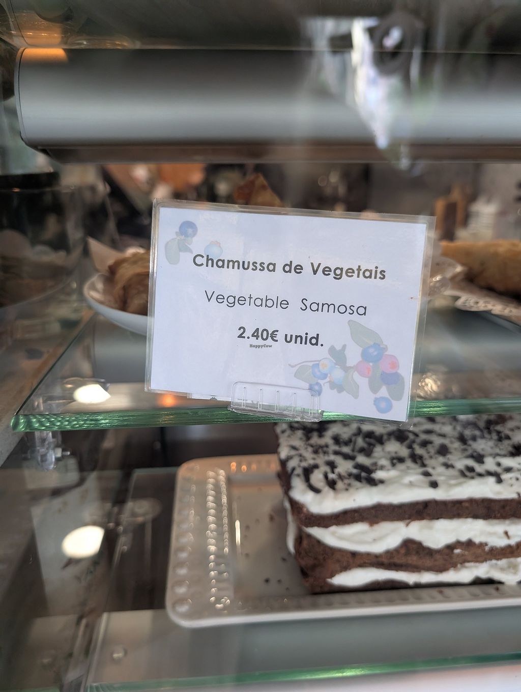 Serves meat, vegan options available. Portuguese bistro serving daily lunches on weekdays. Offers vegan choices such as a vegan Buddha bowl, portobello wellington, desserts and samosas. Open Mon-Tue 08:00-15:00, Wed-Sat 08:00-19:00. Closed Tue.