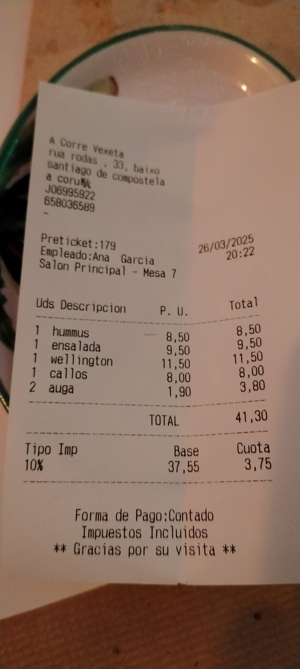 Ticket de una cena para 2