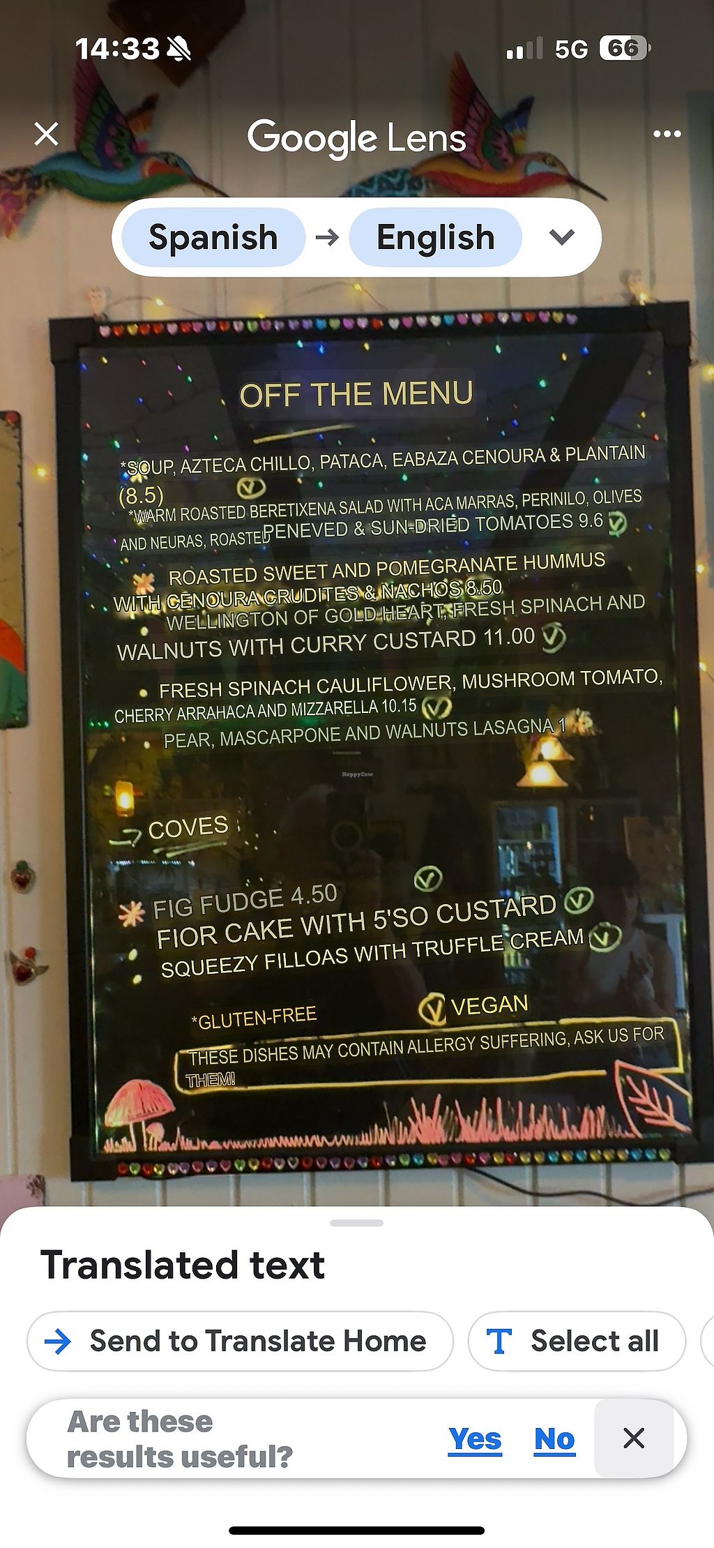 Menu plus there are specials