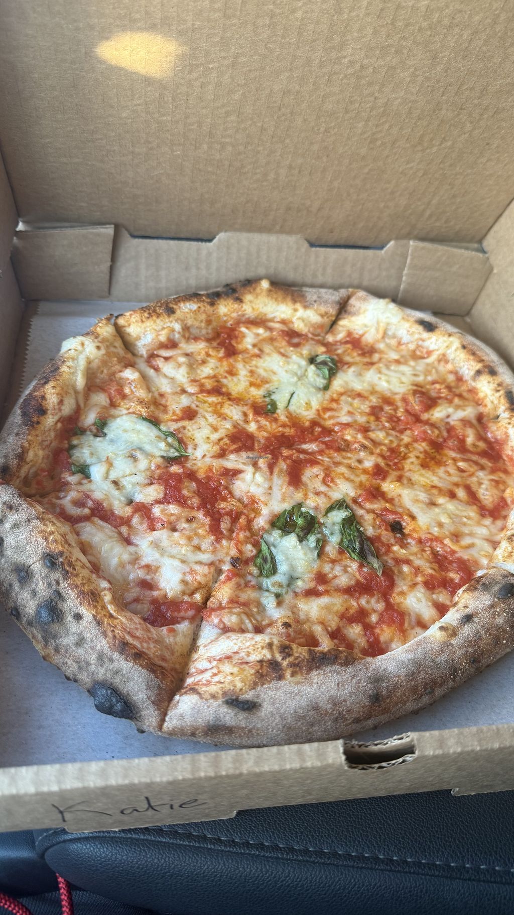 Serves meat, vegan options available. Upscale pizza restaurant with vegan cheese and pepperoni available with an additional upcharge. Also offers vegan sorbet. Open Mon-Thu 5:00pm-9:30pm, Fri-Sat 5:00pm-10:00pm, Sun 5:00pm-9:30pm.