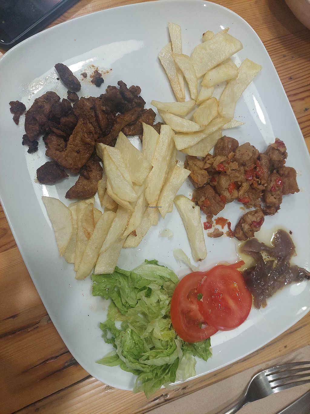 Me and my husband requested "raxo de soja" and "chichareiras" both tradicional food adapted for vegans, both delicious.