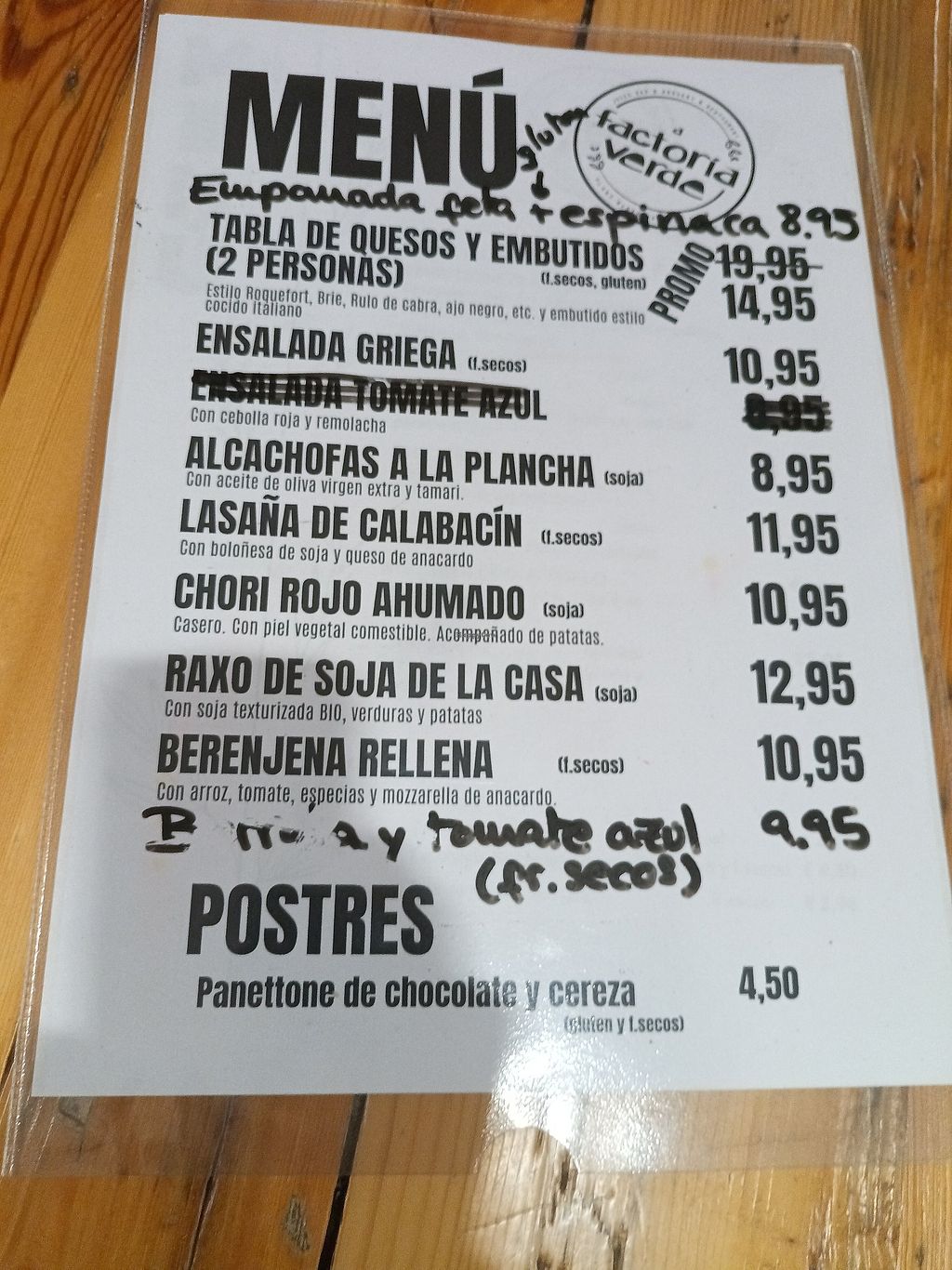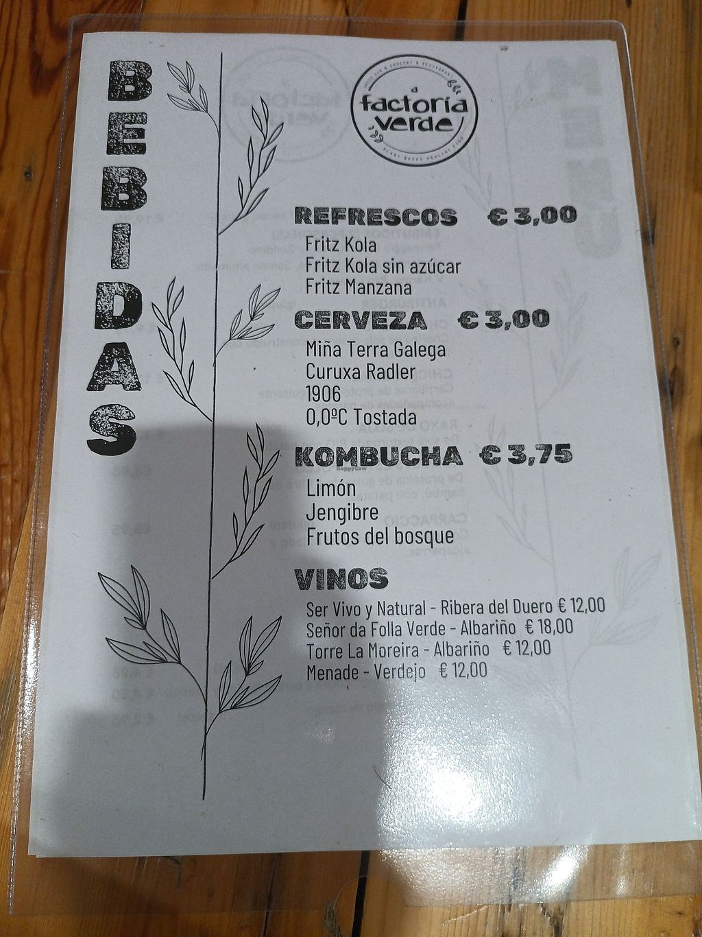 We are visiting from the UK and chose A Factoria Verde for lunch (1.30 to 3.30pm) as we prefer less Veg burgers & chips and more locally inspired options. There is a daily changing lunch menu cooked to order, when we went in May 24 there were at least four hearty options, the Chef was very helpful and actually came out to describe each dish. All the staff were very very friendly and there's a eco store within the Cafeteria too. The food was prepared and served really well and it was delicious! Very reasonable prices, very relaxed. There's a takeaway service available if preferred. There's no actual pavement dining but they open big doors at the front of the café in the summer. They are currently doing Friday evening opening too. They have been open for a good few years and have weathered the economic and pandemic stroms so they must be doing something right.
