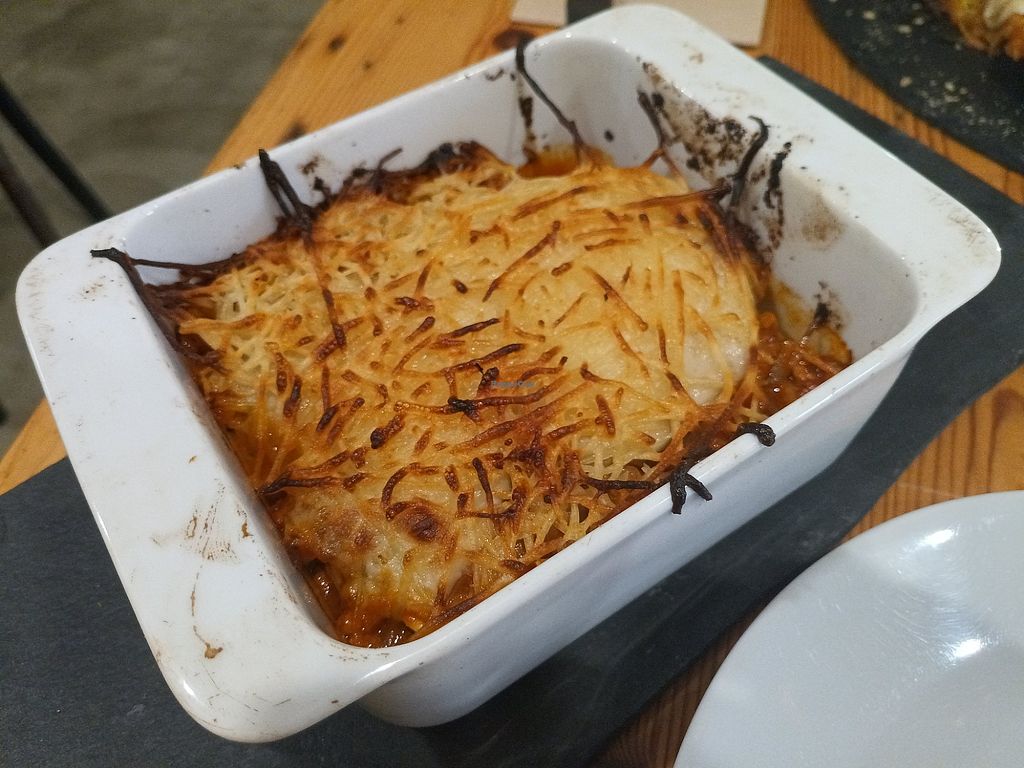 The food offered is the vegan version of what you find elsewhere (zorza, raxo, chorizo, etc.). May be a good option for people who want to start eating less meat without changing much what is on their plates. Everything was super tasty. I really missed more vegetales on the menu.