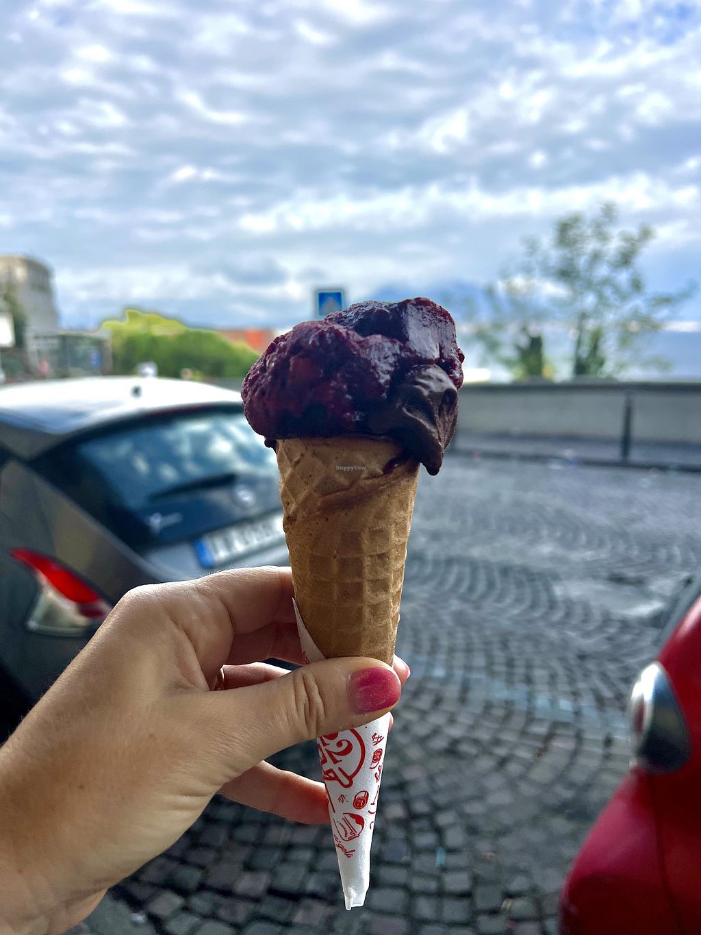 Gelateria offering vegan gelato flavors such as dark chocolate (fondente) and various fruit options made with minimal sugar. Also provides gluten-free and vegan cones. Open Mon 10:30-01:00, Tue-Thu 10:30-00:30, Fri-Sat 10:30-01:00, Sun 10:30-02:00.