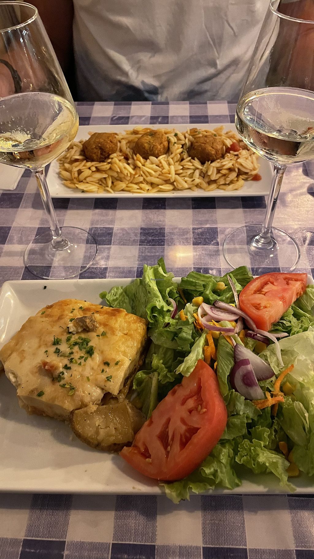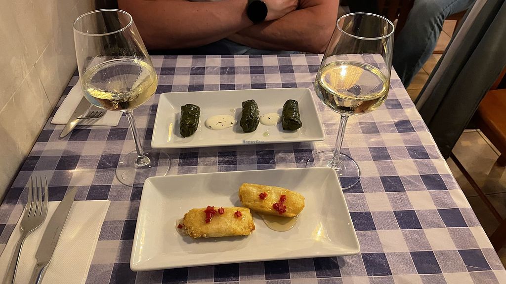 Serves meat, vegan options available. Greek restaurant with vegan starters and main dishes, including hummus, dolmas, a bean stew, and chickpea meatballs with pasta. Open Tue-Thu 12:00-20:30, Fri-Sat 12:00-21:30. Closed Sun & Mon.