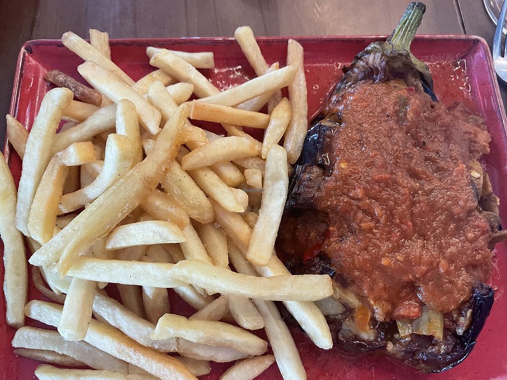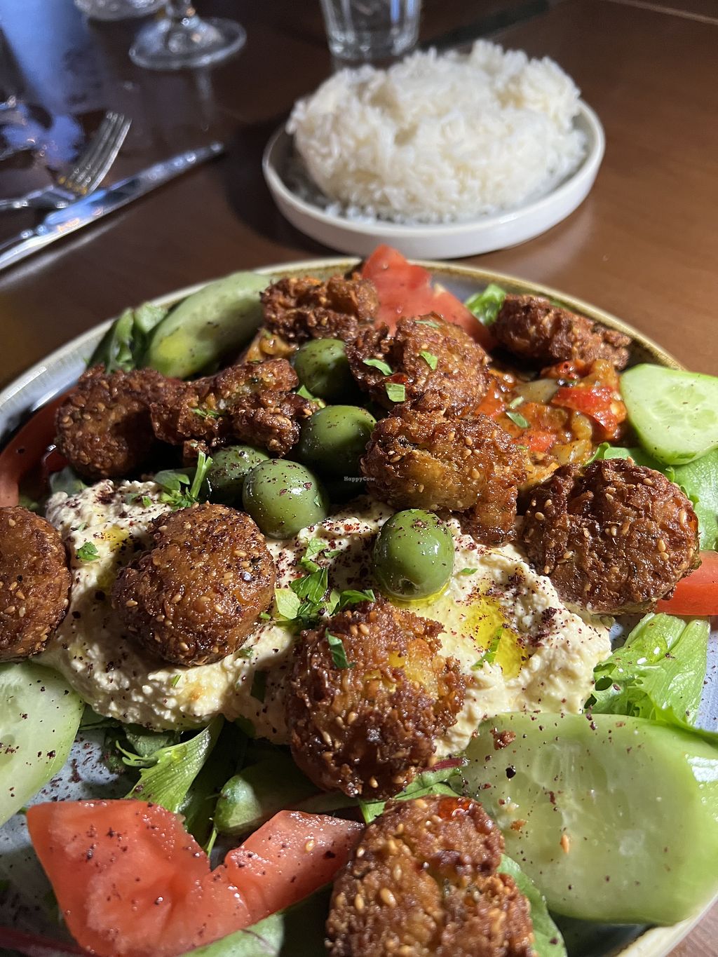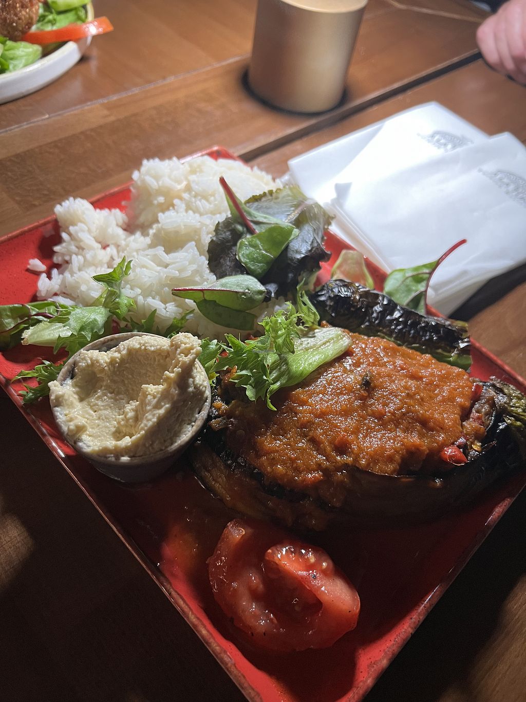 Vegetarian/ vegan section in the menu. We chose the stuffed aubergine and tabouleh as starters, and falafel and stuffed aubergine as mains. Portions were very generous, and it was all delicious.