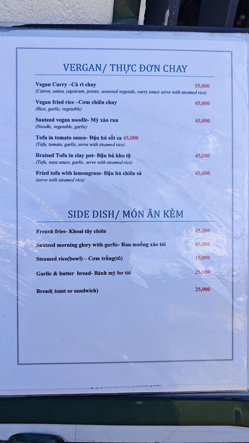 Had the vegan curry which was very tasty, although the sauce was a bit thin. Similar to a massaman curry in taste and only 55k
