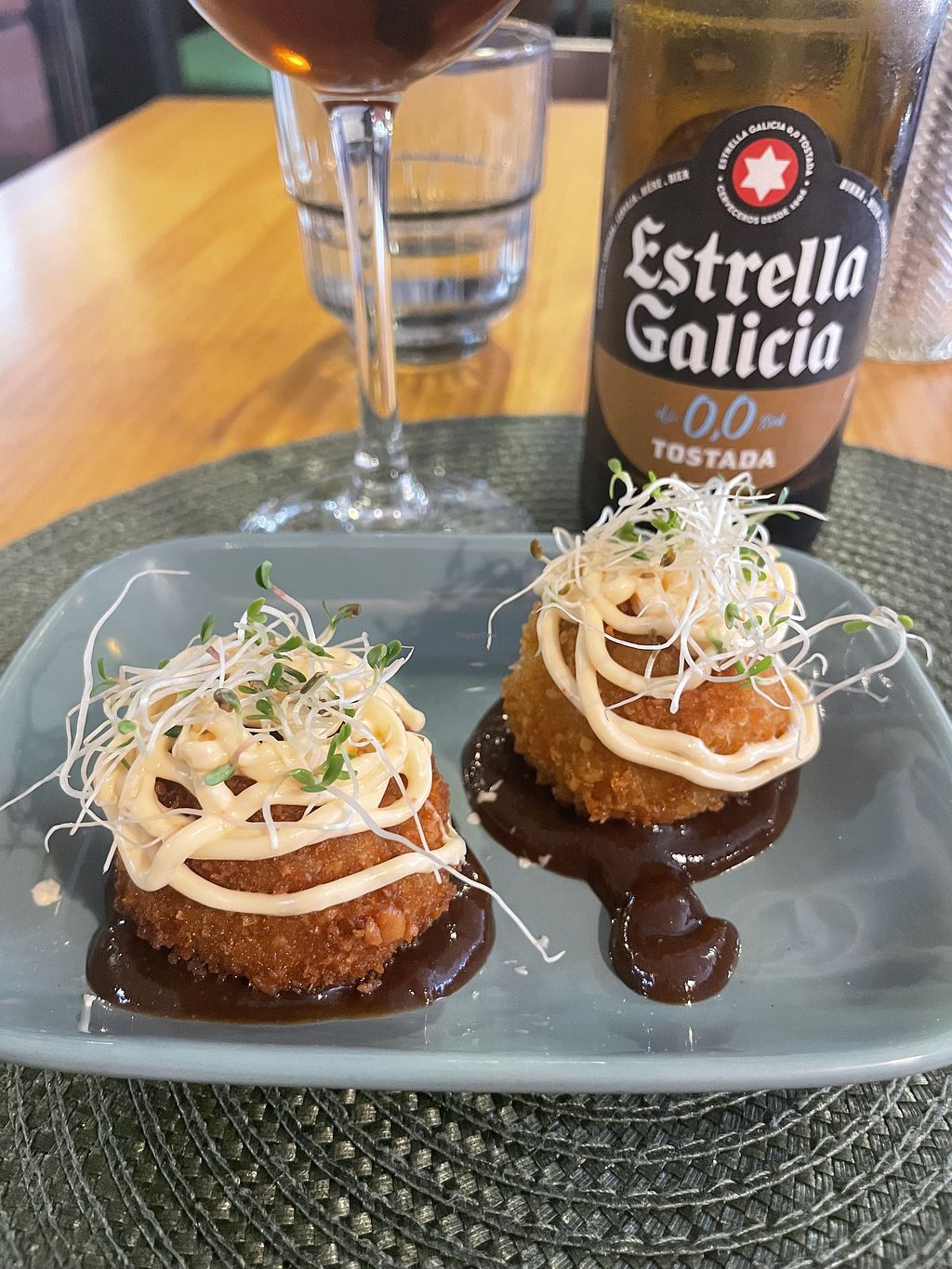 I just had an amazing meal there. Such a cute spot with a full menu of all kinds of wonderful options. I had the bombas de patatas stuffed with kimchi. Wow! Such a great combo of traditional and unusual to make the perfect dish. The Sorrentinos Rellenos (like ravioli) stuffed with squash and served with a delicious pesto with sun-dried tomatoes again, were stunning and delicious. Just perfect. And I love how dogs are part of the dining experience (not just allowed but welcomed) thank you for being a bright light here in this beautiful city and your support of the animals, humans, and planet.
