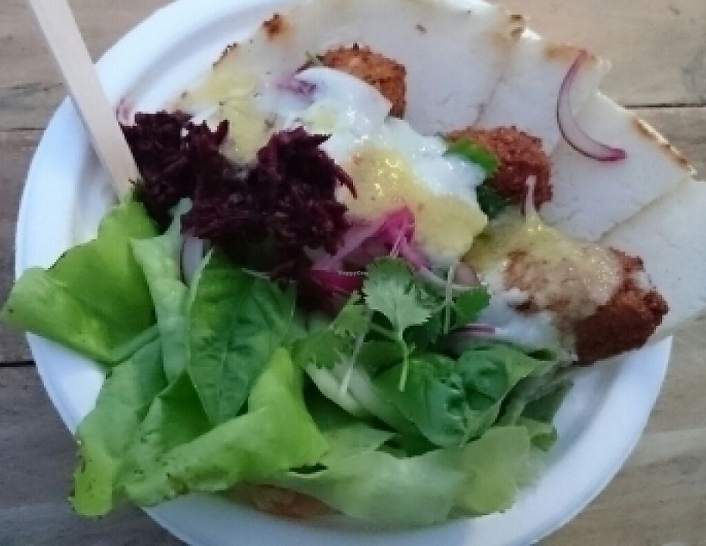 First, their page here on Happy Cow is wrong about the time they open. I'm not sure if it is temporary but I asked on their facebook page and they usually open at 19h. I would say don't arrive before 20h30, 21h as I arrived right on time but still waited a long time for it to open, and even when it did open, the food took a long time to be ready. There was only one worker at the food trailer, so that might have slowed things down.
