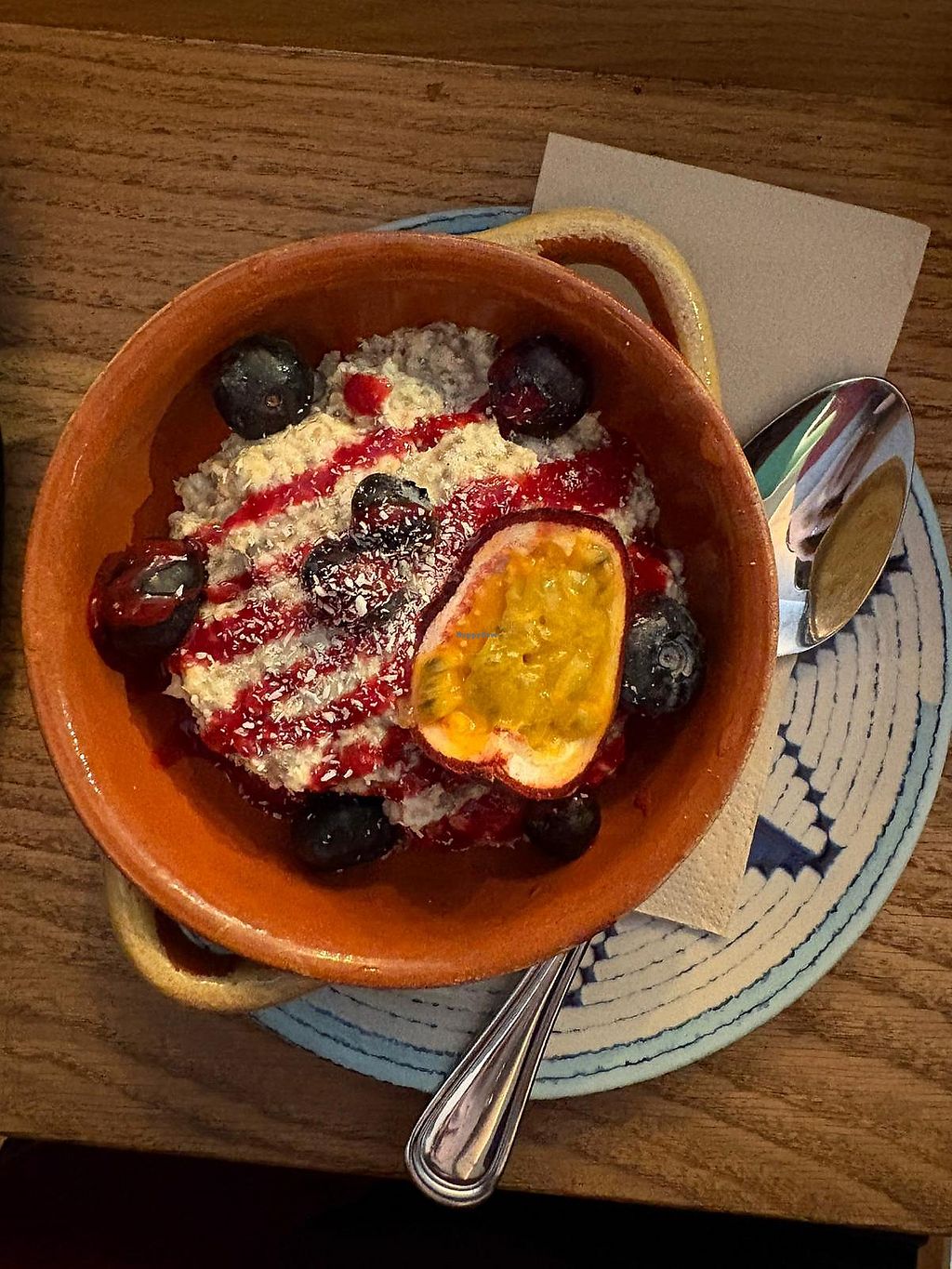 A small café-style restaurant with food from around the world. Vegan dishes are marked on the menu. Choices include filled Indian bread rolls with potatoes and vegetables and vegan overnight oats. Also has vegan mango lassi. Reported fully vegetarian November 2023. Open Wed-Fri 08:00-16:00, Sat-Sun 10:00-17:00. Closed Mon.