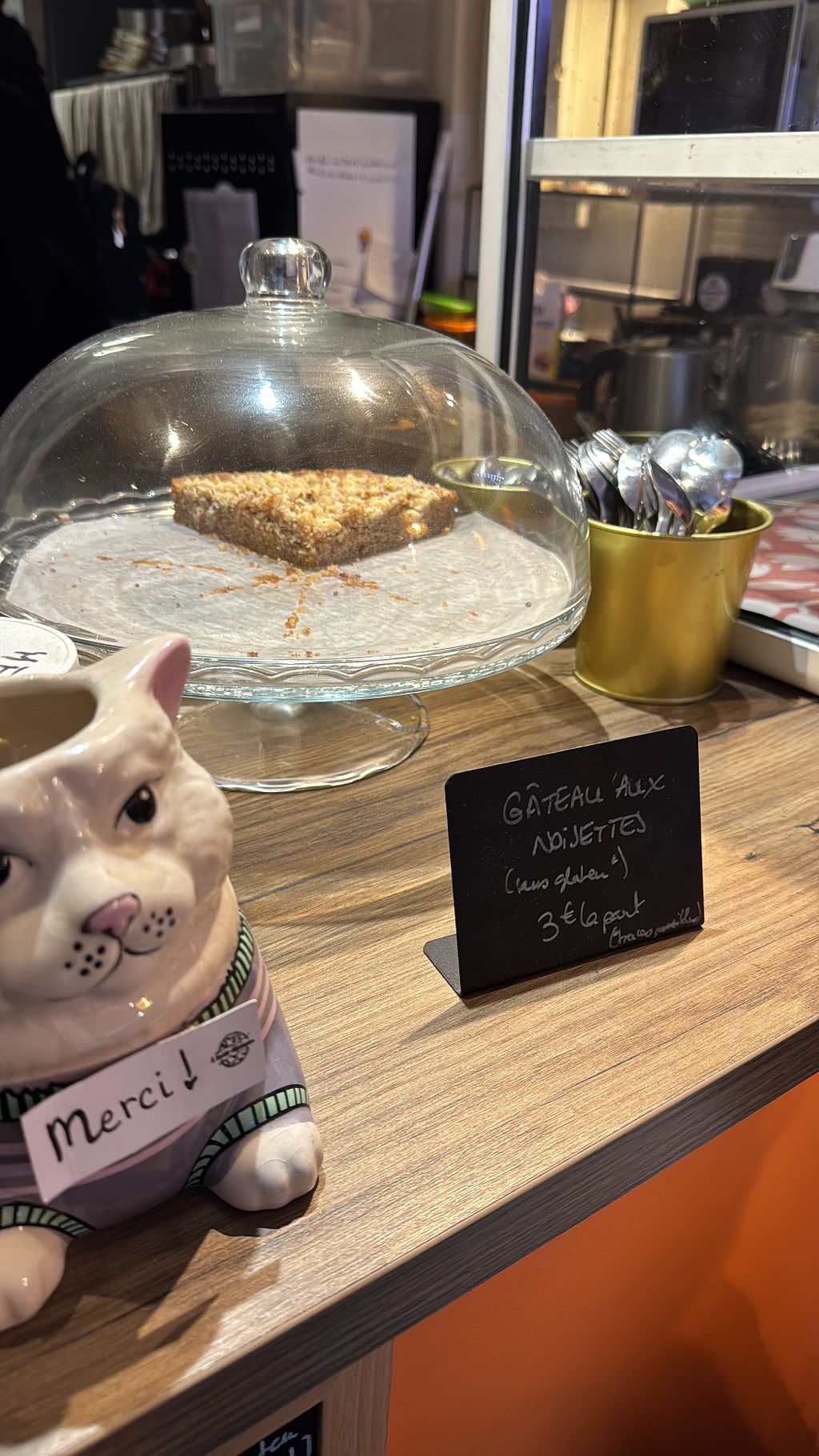 Small cafe with a lot of cakes! I had a delicious gluten free gateux noisettes and a hot chocolate with oat milk. Nice pit stop on a rainy afternoon.