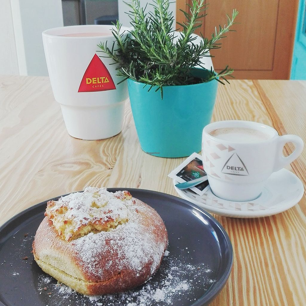 Vegan "arrufada" and vegan "meia de leite" (portuguese milk with coffe…