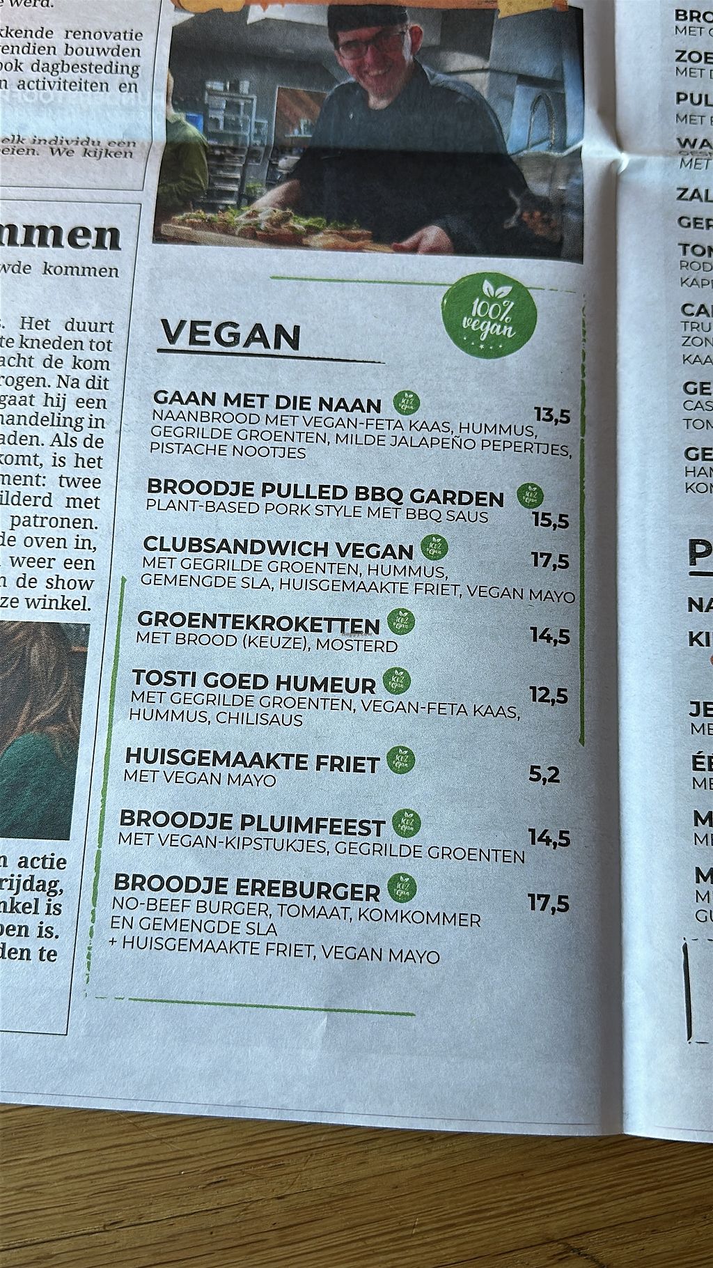 Nieuwe kaart met meer aandacht voor Vegan gerechten - Edit