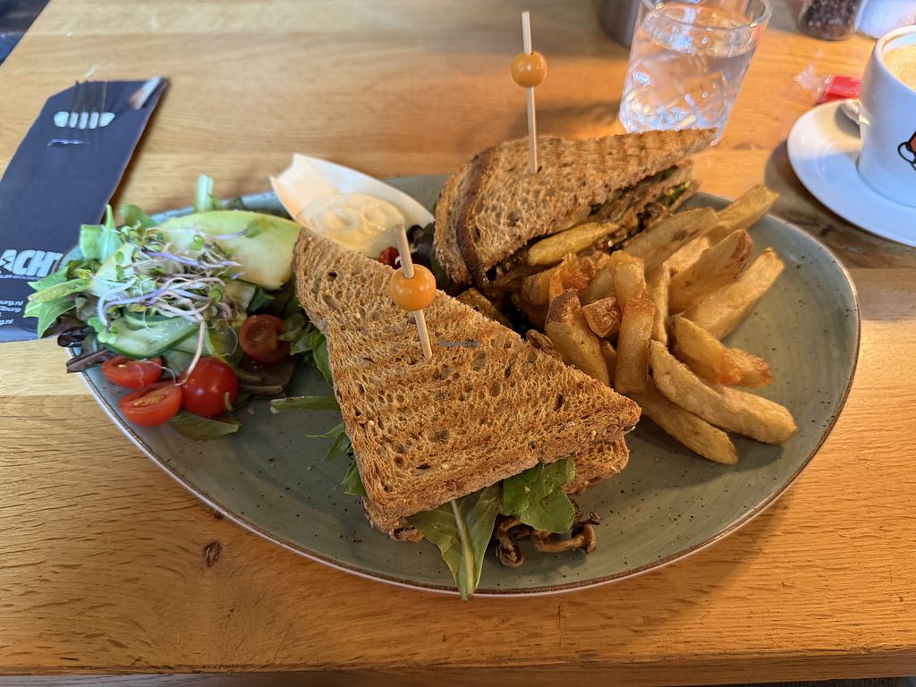 Read moreEten was echter matig, maar gekleurd door persoonlijke voorkeur. We hadden de tosti en club sandwich. Beiden beladen met zeer veel paddestoelen, vermoedelijk bundelzwam. Dit domineert de smaak, maar op de kaart staat dit echter niet vermeld. Wel een belangrijk aandachtspunt om paddestoelen dus niet als “groenten” te vermelden, maar los.