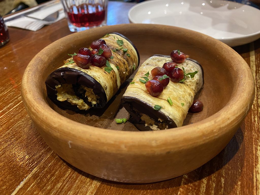 Serves meat, vegan options available. Georgian restaurant and. bakery with vegan choices including aubergine walnut rolls, soup, lobiani, sokos kaurma and more. Open Tue-Sat 12:00-23:00, Sun 12:00-22:00. Closed Mon.